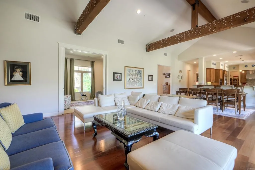 FABULOUS FIND IN PARADISE! Nestled in Pauma Valley Country Club Estates, a private, safe gated community, with 24/7 roaming security guards. This stunning retreat offers a private oasis of luxury and unparalleled amenities. Key features and benefits include: Brazilian cherry hardwood floors and Vaulted beamed ceiling. His and hers offices, media room, and 950 sq ft guest house. 3 car garage, Woodworking shop, RV garage, Circular driveway and 3.2 acres of private land. 4 bedrooms including a 1 bedroom guest house. Expansive front lawn, stone-pillared entry, and mountain views. Owned Solar. Two Koi ponds and 36 fruit trees including, Cherry, Peach, Apricot, Kumquat, Persimmon, Tangerine, Blood Orange, Orange, Pomegranate, Jujube Apple, Mexican Guava, Longan, Cherimoya, Pomelo, Plum, Nectarine, Champagne Grapes and Walnut. As you step through the front door, you'll be welcomed into a home of relaxed comfort and seamless indoor-outdoor living. The wall of large sliding doors not only floods the space with natural light, but transforms the outside into an extension of your living area, showcasing the picturesque mountain views and park-like backyard. This exceptional property is the ultimate retreat for discerning executives and families seeking the utmost in privacy, luxury, and customized amenities. With a large master bedroom and bath including walk-in shower and closet, dedicated offices, a state-of-the-art kitchen, Butler's pantry, Wet bar, media room, and private guest accommodations, this home caters to every lifestyle need - whether you're entertaining clients, pursuing creative hobbies, or simply enjoying quality time with loved ones. Surrounded by 3.2 acres of beautifully landscaped grounds, the back lot is ready for horse facilities. This estate offers a true sanctuary where you can unwind, recharge, and embrace the serenity of your own private oasis. Pauma Valley Country Club is a private club. New Homeowners are welcomed to apply for Membership. Various Memberships are available.