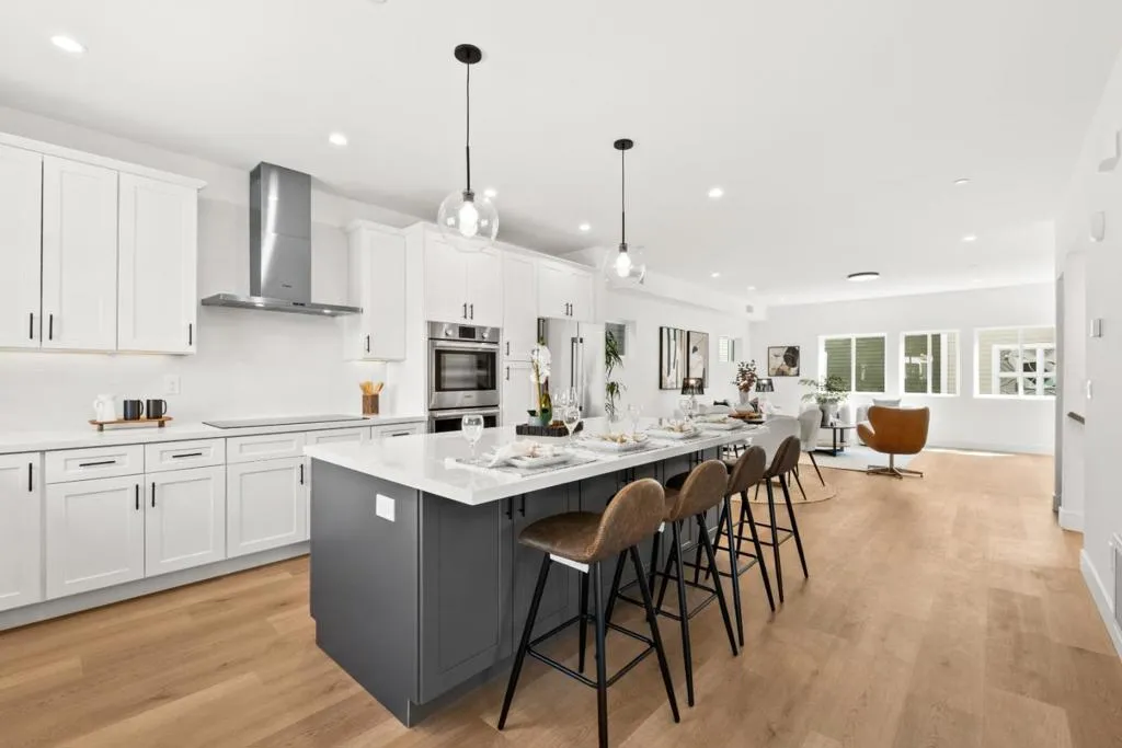 HUGE Price improvement - This new, 4-bedroom home in Mountain View is the last Unit out of 9 Units in the project and just completed in 2024.2025 - three-level residence offers 1,850 sf of living space tailored to the needs of a contemporary lifestyle. Enjoy a ground-level guest suite, the main level with open living space and a chef's kitchen, with lots storage space and a private balcony for al fresco enjoyment, and the expansive, upstairs primary suite. This stunning open-concept floor plan boasts West Elm lighting & high-end finishes throughout. The epitome of luxury living, from beautiful Flooring, Pantry, Shaker Cabinets, Double ovens, LaCava & Kohler bathroom Sinks, Toto toilets, dual-zone HVAC, Washer & Dryer. Window covering is included, as well as a private front porch, private balcony, and amazing low-maintenance landscape managed by the HOA. Attached, 2-car garage with a pre-installed wiring for EV charger, Plumbed for Solar. This location puts everything the area has to offer within easy reach - downtown Mountain View and Los Altos are short drives away; major Tech campuses, including Google, Microsoft, ARM, Intuit, NVIDIA, and Meta. A charming City park is almost next door. Featuring award-winning MV/Los Altos Schools (top-rated Los Altos High School).
