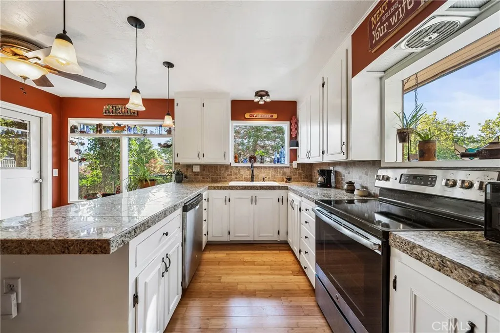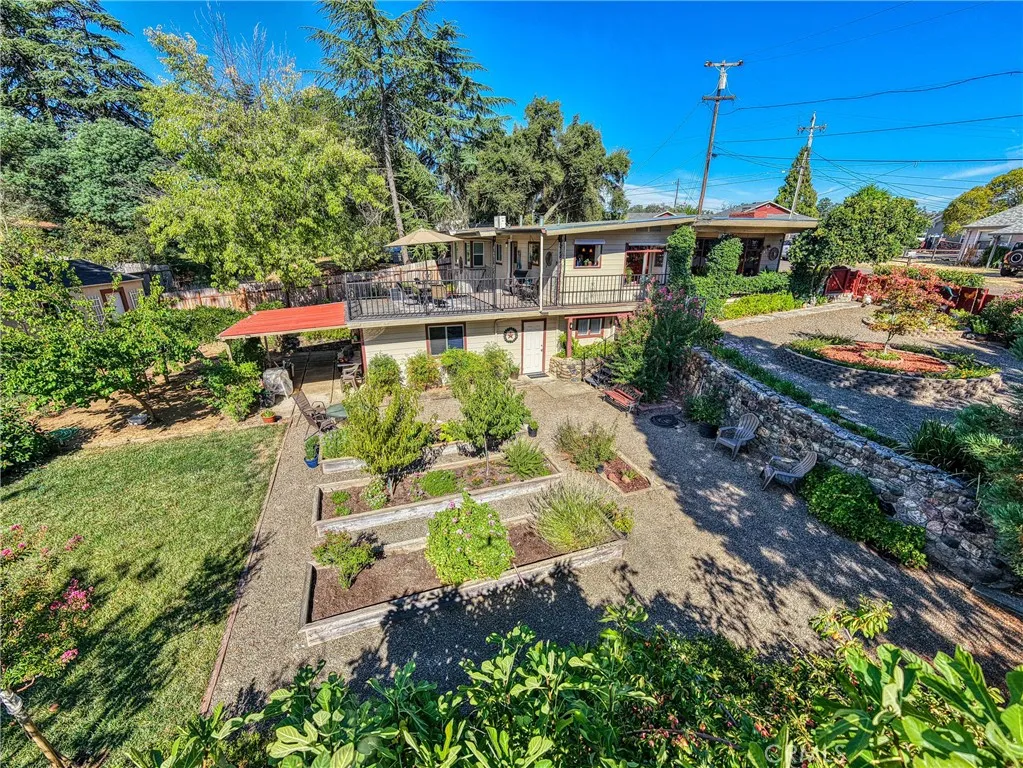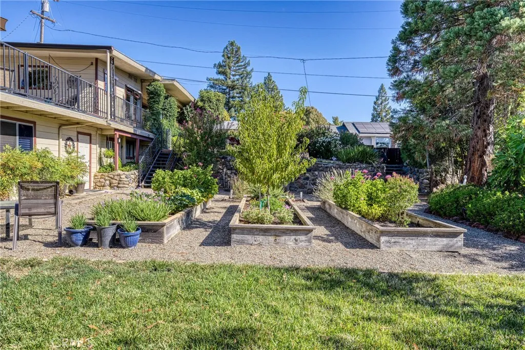 Beautifully landscaped, large, fenced yard in North Lakeport. Great neighborhood. 3-bedrooms, 3-bathrooms on 0.375 of an acre. NEWER ROOF- Roof replaced on home and shed is past 2 years! Main house is a spacious 2-bedroom, 2-bathrooms. Additional 1-bedroom 1-bathroom ADU also. ADU is a great feature for extended family, extra income or home office, etc... Many possibilities. Main house features bamboo flooring throughout. Mini split for heat and air. Living room has a wood stove, ceiling fan, large windows for natural lighting, and built in bookshelves/shelves. Kitchen features granite counter tops, wrap around counters, electric glass cook-top stove, deep sink, dishwasher and ceiling fan. Full guest bathroom with tiled flooring, large vanity, walk-in shower, separate tub, updated window and glass shelves. Stackable washer and dryer in hallway. Nice size guest bedroom with carpet, ceiling fan and a large closet. Large primary bedroom with carpet, ceiling fan and walk-in closet. Primary bathroom features a walk-in shower, dual sink and tile flooring. Covered front porch, large deck in back and lower sitting deck. BONUS ADU separate entrance featuring 1 bedroom with tile flooring, ceiling fan and large closet. 1-bathroom with walk-in tiled shower and tile flooring. Kitchenette featuring a sink, refrigerator, microwave, and living room has a ceiling fan. (Option of furnishings in ADU). Great rental income potential or N-Law unit. The utilities to the ADU run off the main house. Large shed in the back yard with a deck and walk-ways. Green lawn in back yard, lots of plants, flowers, raised beds, and multiple drains. French drains around property, and sump pump system under house. City water and city sewer. Walking distance to downtown Lakeport and close to the schools.