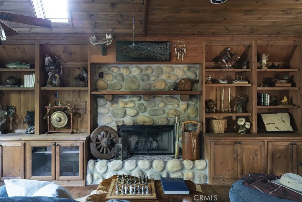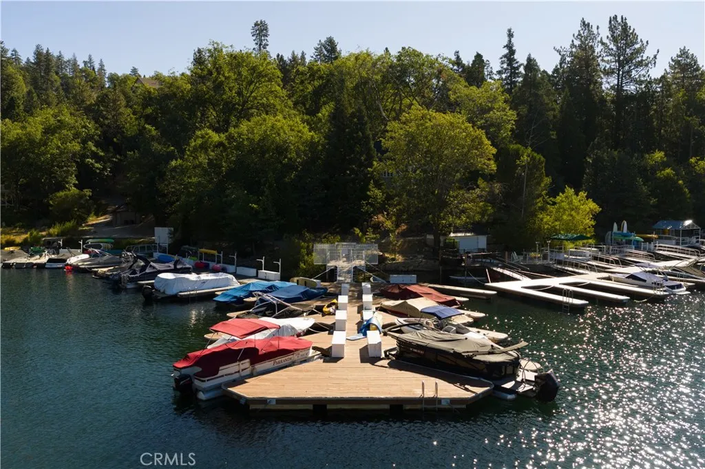 Two iconic A-frames on one property, tucked just off the waters of coveted North Bay. A seasonal creek winds between the cabins, with a treehouse set back among the trees, creating a setting that feels private yet connected to everything Lake Arrowhead has to offer. This rare first tier property offers an exceptional lake lifestyle, with a multiple dock slip featuring an end slip, boat, and rare level access straight to the water. The seller is offering the buyer of the home first right of refusal to purchase the dock separately for additional monies, providing the opportunity to secure the complete Lake Arrowhead experience. No endless stairs, just an easy walk to the water. Step inside the main A-frame and experience a true mountain lodge. Rustic wood paneling, walls of glass, exposed beams, and stone accents bring the outdoors in. The home offers three bedrooms, two baths, decks on both sides, and a jacuzzi with a peek of the lake, ideal for peaceful mountain evenings. Follow the stairs down through the expansive outdoor patio to the guest A-frame, offering one bedroom, one bath, a cozy living space, and a two car garage below. With warm wood paneling, large windows, a small deck off the living room, and a loft style bedroom, it mirrors the same classic A-frame charm. Outdoors, a spacious patio and outdoor kitchen create the perfect setting for entertaining or simply slowing down and enjoying the mountain air beneath the trees. Iconic architecture, rare lake access, and a lifestyle opportunity that rarely comes available. This is Lake Arrowhead at its best.
