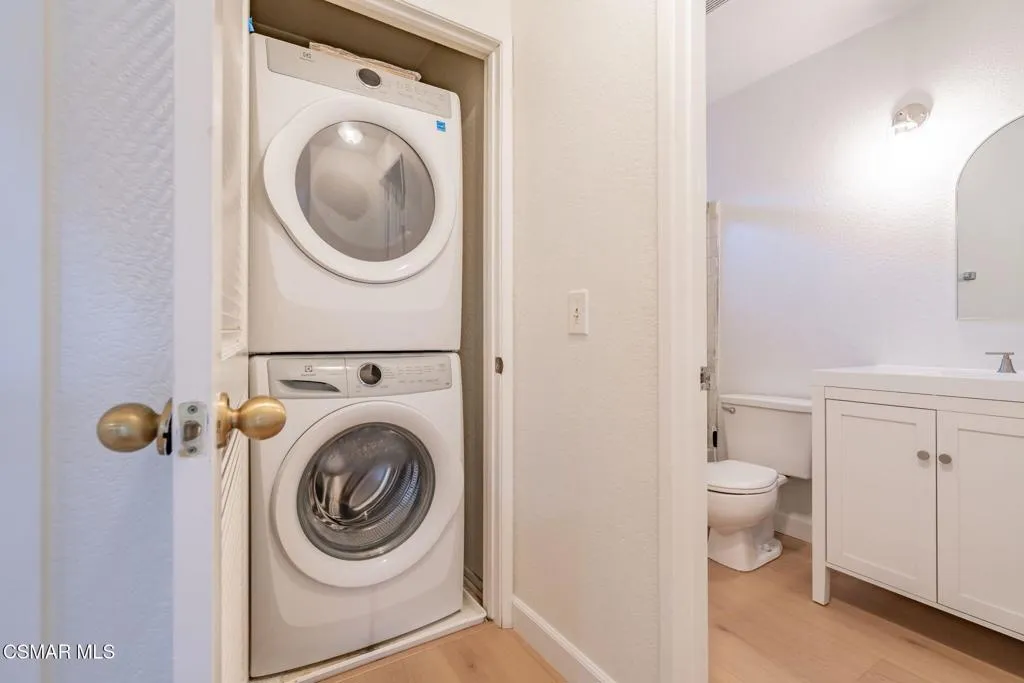 New flooring & paint!! Light & bright & ready to move in!! Upper unit situated in a great location at the rear of the complex with tranquil views of the surrounding trees & sky!! Two spacious bedrooms & 2 baths, 960 sf of clean lines & roomy living areas, recessed lighting, ceiling fans, granite-faced fireplace, breakfast bar & dining area with beveled mirror wall & an interior stackable laundry closet. The community pool/spa offer a nice opportunity to relax & you can enjoy your morning coffee from the front balcony while listening to the birds & savoring the crisp spring air!! Additionally, this complex is VA approved!