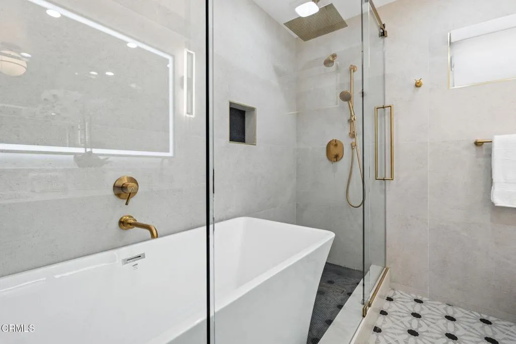 Discover unparalleled living in this meticulously remodeled 4-bedroom, 3-bath home, where every detail has been thoughtfully updated. The exterior showcases a durable metal roof and new stucco, ensuring both curb appeal and longevity. Step inside to an all-new interior, from the modern kitchen with its high-end appliance, waterfall island to the majestic fireplace, Custom cabinetry stylishly appointed bathrooms, including a water room and a convenient, dedicated laundry room.Think economics with new windows, doors, electric panel, HVAC, a/c, automatic shades and car charger.The beauty of this home is a rare art piece. Every detail has a significant personal detailed touch.The outdoor spaces are just as impressive. A beautiful new gazebo sits within the tiered landscape with sprinklers and lighting creating an ideal spot for relaxation, and outside kitchen for the ultimate in alfresco dining & entertaining. Full size Olive, avocado, persimmon trees, beautifully finished concrete stairs and iron fencings round the brick tiered yard. The elevated location provides spectacular, sweeping views of the city lights, the Pacific Ocean, and the majestic mountains. The oversized lot will allow for many activities and friendly gatherings. Parking driveway was expanding for four cars. Coming home every day will be a joy. As a bonus, an optional Ondulando Club membership is available, offering a community hub with a pool, pickleball. Living the Hillside life with space to grow and unparalleled views in a like new home might be just what you need...Come by for the list of upgrades.
