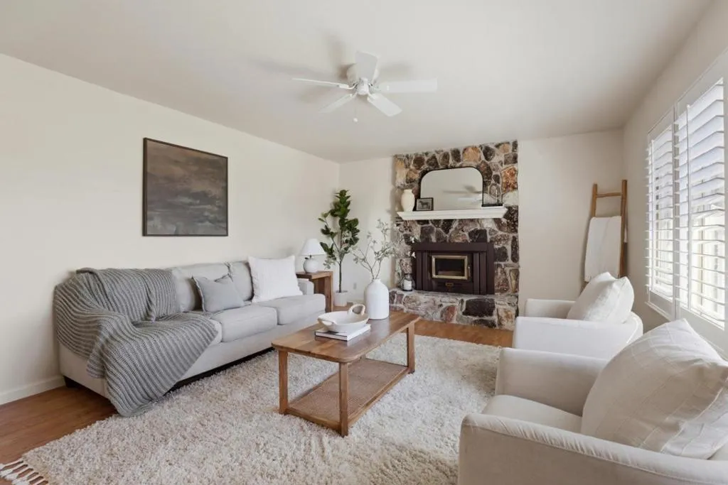 Welcome to this charming 3-bedroom, 2-bathroom home located in the Los Olivos/Riker neighborhood in South Salinas. First time on the market in 50 years! With 1,708 square feet of living space, this home offers a functional layout perfect for modern living. The kitchen is a standout feature, boasting quartz countertops, a convenient island, and a built-in oven range, making it an ideal space for culinary enthusiasts. The home features a variety of flooring, including new carpet in two of the bedrooms, hardwood, and vinyl/linoleum. The family room, combined with the kitchen, creates a welcoming environment for gatherings and relaxation. Stay cozy on cooler nights by the fireplace, a pleasant addition to the living area. For your convenience, the laundry area is located in the garage, which also offers two parking spaces, and a brand new water heater. The interior and garage has been completely painted. Enjoy the blend of comfort and practicality in this well-appointed South Salinas home.