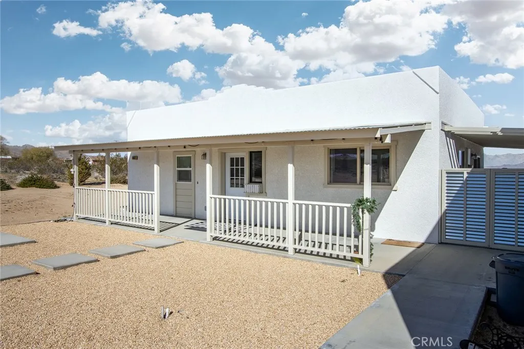 SEE THE VISEO ABOVE!! Immaculately maintained and recently **REDUCED**, this Southwest-style adobe home is in near-perfect condition and offers an exceptional blend of privacy, comfort, and stunning desert scenery. Perched high on the mesa, the property showcases sweeping views of the iconic Goat Mountain—**VIEWS, VIEWS, VIEWS!** A large, detached finished garage complements the home, while the standout feature is the **HUGE custom-built metal workshop**, perfect for an artist’s studio, creative retreat, or hobby space. The expansive parcel provides excellent privacy with convenient access to Reche Rd via Fortuna Ave. Inside, the spacious kitchen features ceramic tile countertops, stainless steel appliances—including a side-by-side refrigerator—a breakfast bar, and abundant cupboard space. Custom vertical blinds add a thoughtful finishing touch. The bedrooms are simple, functional, and comfortable, each offering ceiling fans and mirrored closet doors. Cable, internet, and phone services are available. The roomy bathroom is practical and well-kept, and the home is equipped with central heating and air conditioning for year-round comfort. Large concrete patios and connecting walkways enhance the outdoor living experience. The finished and painted garage includes an automatic door opener, two large windows for natural light and ventilation, laundry hookups, and motion-sensor security lighting. The fully enclosed backyard features a **private jacuzzi**, ideal for enjoying peaceful sunrises and unforgettable desert sunsets. Convenience is unmatched—just a few miles from a coffee shop, gourmet restaurant, grocery store, café, and gas station at Hero’s Market. No need to drive into Yucca Valley for essentials. This location is ideal for both **short-term and long-term rentals**, with **no current municipal restrictions on Airbnb permitting**. Whether you're seeking a primary residence, a vacation getaway, or a strong investment property, this opportunity checks every box. Located near the Integratron and Giant Rock, this well-kept home sits in the heart of Landers. **Sellers are motivated and open to offers—don’t miss this incredible opportunity.** **SEE VIDEO ABOVE!