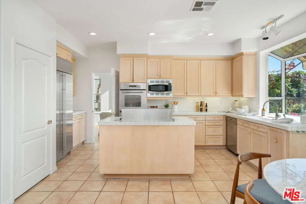 Perched in the exclusive Summit Club of the Palisades Highlands, this immaculate Mediterranean estate offers the best of coastal California living. With 4 bedrooms, 3 baths, and 2,781 sq ft on a nearly 11,000 sq ft lot, the home captures sweeping ocean and Santa Monica Mountain views from nearly every room. A dramatic two-story entry with soaring ceilings, hardwood and stone floors, and elegant French doors welcome you into light-filled living and dining spaces. The gourmet kitchen features a center island, breakfast area, and premium GE Monogram refrigerator, GE Profile double ovens, Miele dishwasher, and gas cooktop with downdraft, opening seamlessly to the family room with fireplace and the private, rose-lined patio and grassy lawn perfect for entertaining against spectacular sunsets. Upstairs, the romantic primary suite delights with a sitting area, fireplace, cedar-lined walk-in closet, spa bath with soaking jacuzzi tub, dual vanities, and a private view balcony. Three additional bedrooms offer flexibility for family, guests, or office space. A three-car garage, inside laundry, and membership in the Summit Club with resort-style pool, spa, tennis, basketball, gym, clubhouse, and exclusive private dog park complete this rare offering. Minutes to Palisades Village, Sunset Boulevard, and Will Rogers State Beach, this timeless retreat blends serenity, elegance, and the ultimate Highlands lifestyle.