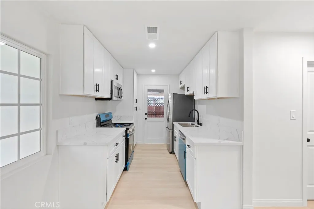 The open and bright floor plan features a brand-new gourmet kitchen with modern cabinetry, sleek countertops, and stainless steel appliances perfect for cooking and entertaining. The bathrooms have been completely remodeled, offering a spa like experience, while new flooring throughout brings a fresh and cohesive feel to every room.