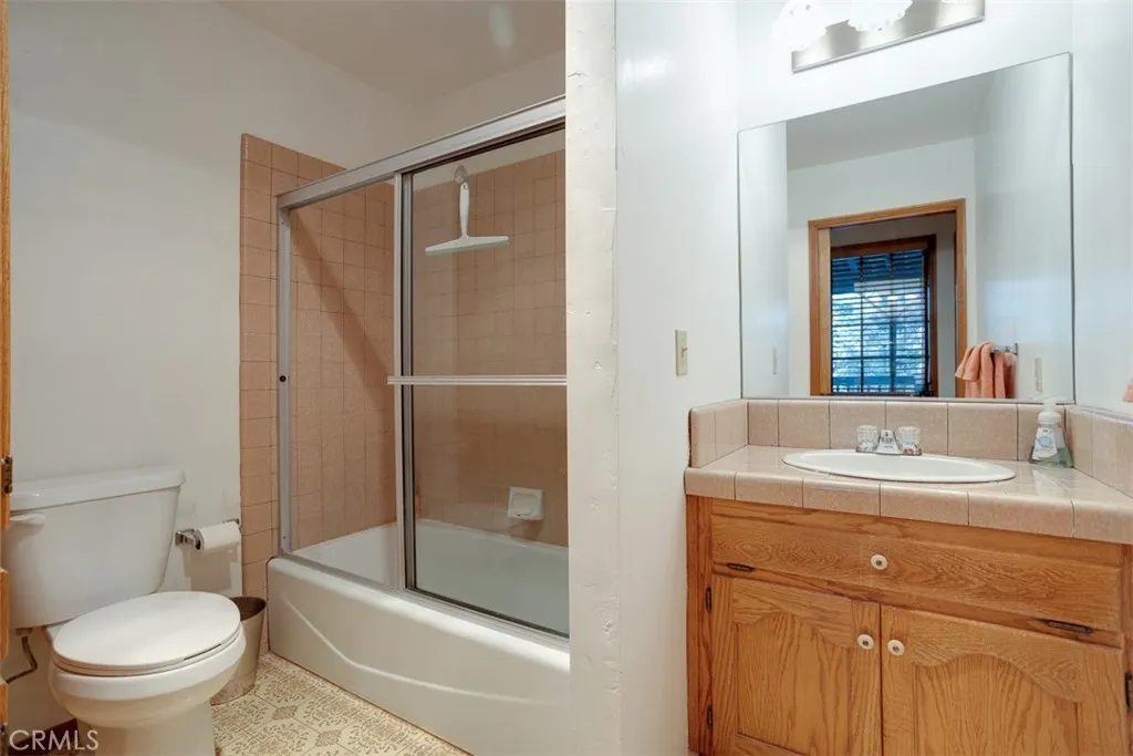 Discover your mountain sanctuary in this spacious and inviting home on a quiet street with Lake Rights! Beautiful forest views and a large, treed lot make the perfect retreat. Step into the entry with a stunning Stained-Glass window that brings ethereal light into the home. The wood Cathedral Ceiling in the Living Room above the massive brick fireplace is the essence of mountain ambiance. On the main floor is everything you need – a spacious private Primary Bedroom with an en-suite bath, walk-in closet and beautiful forest views, Living Room and Dining Room with beautiful views, a Kitchen opening up to the living area, a Laundry and Powder Room. The large windows bring in natures’ best with views of towering pines and vibrant oaks. The large Deck outside the Dining Room offers plenty of space for the whole gang for Al Fresco dining, listening to the birds, the whispering of the pines or watching the wildlife. Upstairs are three spacious Bedrooms with vaulted wood ceilings and a full Bath for your guests. Downstairs is another Bedroom, another full Bath and a great Game Room with River Rock Fireplace, Bar, Pool/Ping Pong Table and Basketball Shot game! Right off the Game Room is a large, covered deck for relaxation, quiet conversation and convenient access to the dog run below. There is level entry into the two-car garage and level parking off a paved and maintained road that is plowed by the County. Just a few landscape stairs to the front door, this turn-key furnished home is move-in ready! Easy commute down the hill. Enjoy all the mountain has to offer and make your Lake Arrowhead Dream a reality! Home is in need of paint and the price was reduced accordingly; however, Seller has a Notice of Completion for all the Section One Wood Destorying Pest work.