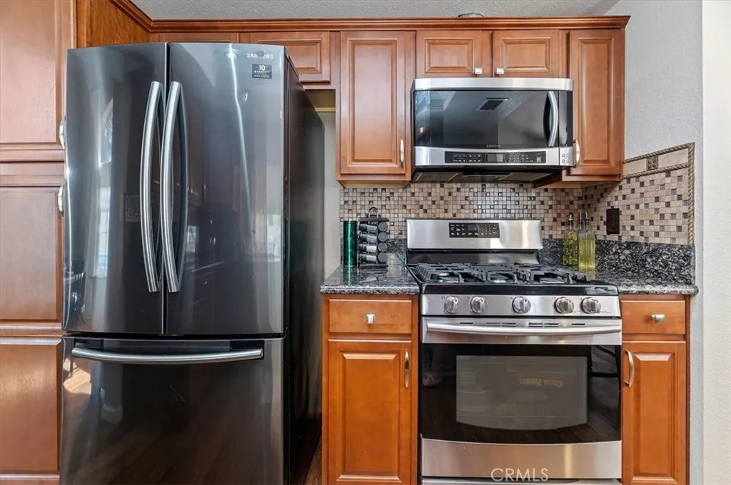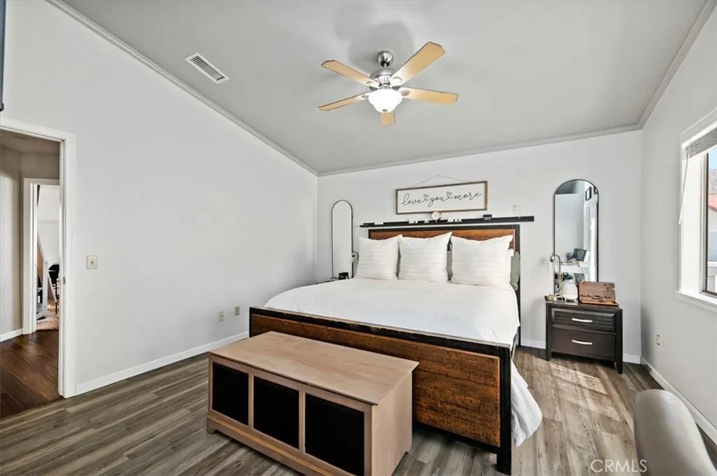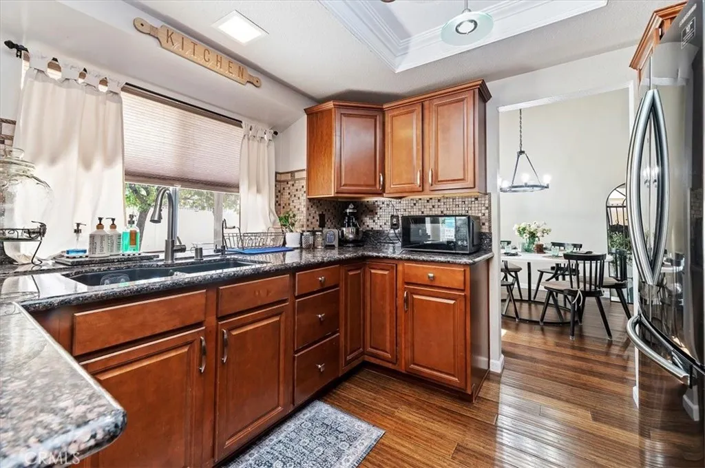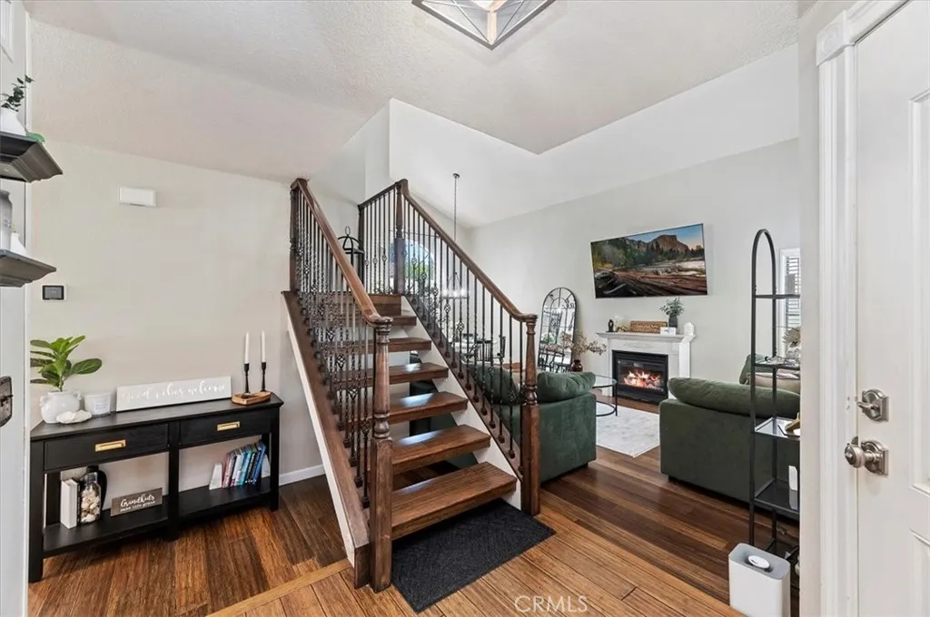 Welcome to your new home! Stunning 4-Bed, 3-Bath, 2-Story Home in Sunnymead Ranch! This beautifully upgraded home features 4 large bedrooms and 3 full baths. With one bedroom and one bathroom on the first floor. The home also has bamboo wood flooring, a custom wrought-iron staircase, a cozy fireplace, an upgraded kitchen and french doors. The updated kitchen offers granite countertops, stainless steel appliances, custom lighting, and a large bay window. Spacious bedrooms include oversized closets, and the luxurious primary suite has a private balcony, dual sinks, and a walk-in closet. Enjoy the beautifully lighted backyard with a fire pit and paved side area. Freshly painted, newly recovered roof, and a 3-car garage with 220V outlet & storage loft. Located in the sought-after Sunnymead Ranch community in Moreno Valley, featuring walking paths, lake, clubhouse, gym, pool, spa, tennis, pickleball, and more!