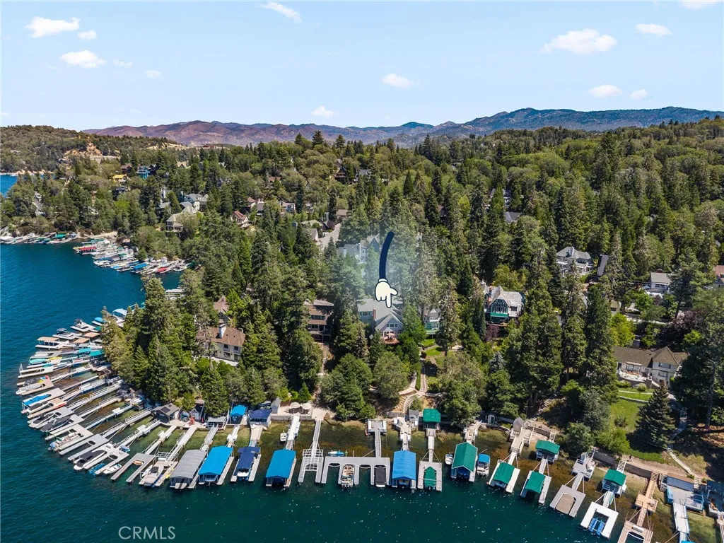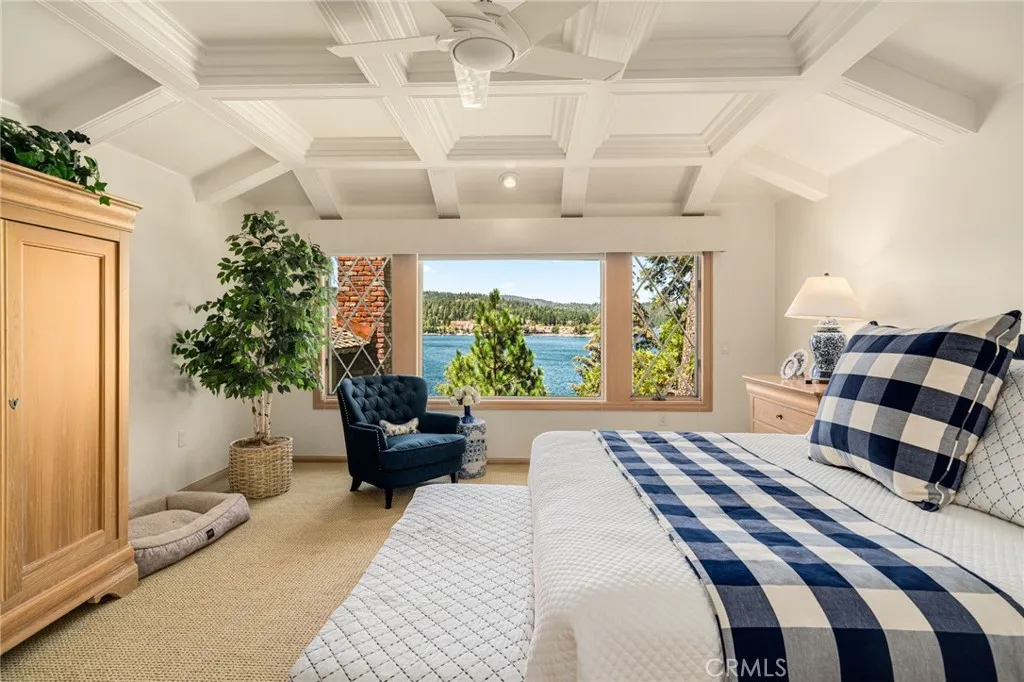 LAKEFRONT, lake view homes in Lake Arrowhead - One of a kind. Located in the palisades neighborhood, walk straight into this level entry 5 bedroom, 5 Bath custom home and get blown away by the lake views and overall orientation to lakefront living. The family area and primary suite features custom coffered ceilings, and expansive west facing views (exceptional at sunset). The home is immaculate, the exterior has a NEW roof, NEW exterior paint and the detail to the construction of the brand NEW deck is impressive. This home shows an extreme pride of ownership with every detail. The access to the dock couldn't be more perfect, nice easy path and takes you to your private lakeside patio with Single Slip Dock. The Dock amenities include, a hydro hoist under a nautical canopy, a large concrete patio for entertainment, side tie for guest and additional rear tie up, currently used for a Boston Whaler for easy convenient transportation to Restaurants, Bars, Loan Pine Island, Marina, and other Lake features. The Dock and Patio also include, a Dock House for all your sporting goods, exterior furnishings, and service area with refrigeration for beautiful afternoon entertainment for the entire family. This property is ready to enjoy. This property is viewed by appointment only. Dock Number : S333