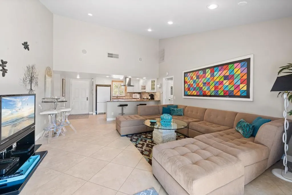 Views, Views, Views. Premium location with absolutely fabulous views in the heart of guard gated Palm Desert Resort Country Club. This highly desirable south facing condo is elevated with mountain views, overlooking the golf course, water ponds, & clubhouse. The well laid out Vintage plan has 2 bedrooms and 2 bathrooms, separated by an open living area. The living area & both bedrooms have sliding glass doors providing easy access to the wide patio & expansive views...perfect for entertaining. High smooth ceilings create a bright & airy feeling. Close to the community pool, Clubhouse, tennis & pickle ball courts. This home comes turnkey furnished & is ready for new owners to live here seasonally, full time, or can be used as a Short Term Rental with a 3 day minimum. The laundry room has been modified & is now accessible from both outside & inside the home. The HOA dues cover exterior building maintenance (including roof), landscaping, insurance, trash, and Cable TV. The HOA also includes most of the amenities, including the clubhouse, cafe/bar, 20 pools/spas, tennis courts, dog park, pro-shop, 24 hour security, and much more. Golf & pickleball are available separately.