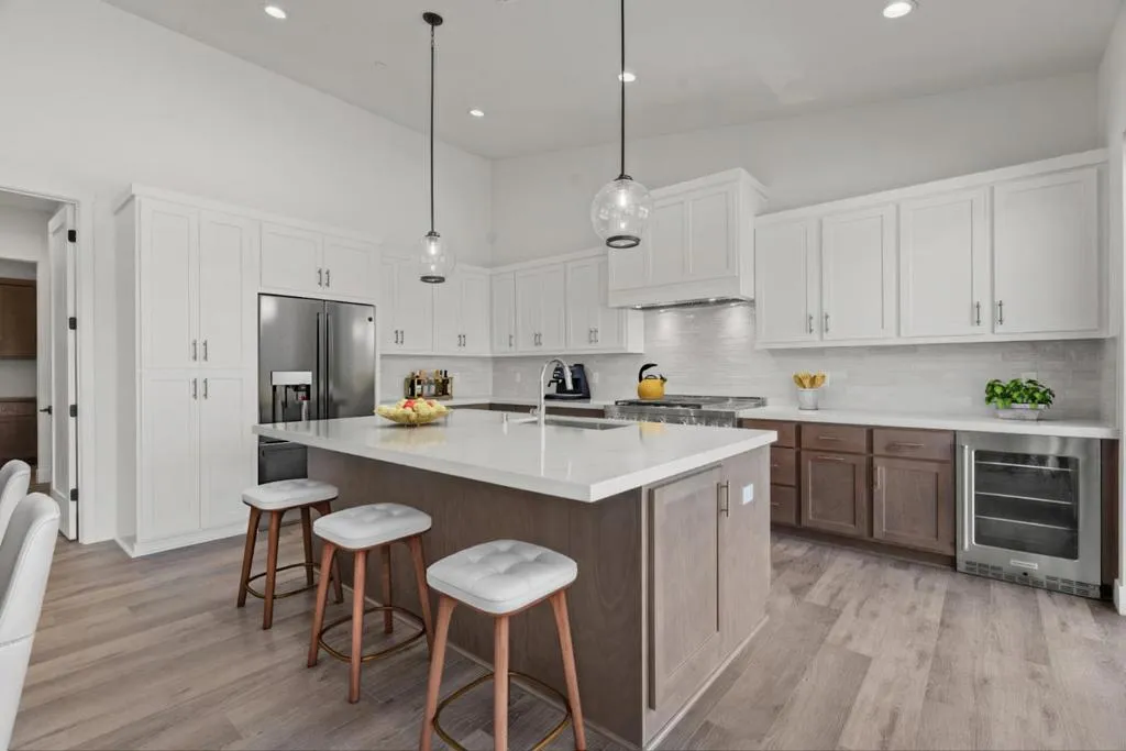 A spacious 4-bedroom, 3-bathroom home on the tiered, gentle slope just South of Hollister, allowing views. Sitting on a generous 7,505 sq. ft. lot, this residence boasts 2,552 sq. ft. of living space, designed for comfort and convenience. Milgard windows Old world wall texture Luxury vinyl plank flooring in living areas Nest thermostats Dual-zone HVAC on two-story homes Cabinets: Cabinet knobs/pulls included Soft-close drawers and doors Integrated trash bin Built-in range hood KitchenAid appliances Kohler sinks and toilets Sterling laundry sink Cast iron Kohler tubs and shower pans Primary shower tiled shower and pan Full tile backsplash in kitchens Quartz countertop 42 gas fireplace Recessed LED can lighting throughout the house Ceiling fans in the primary bedroom and living room Insulated garage doors with opener included