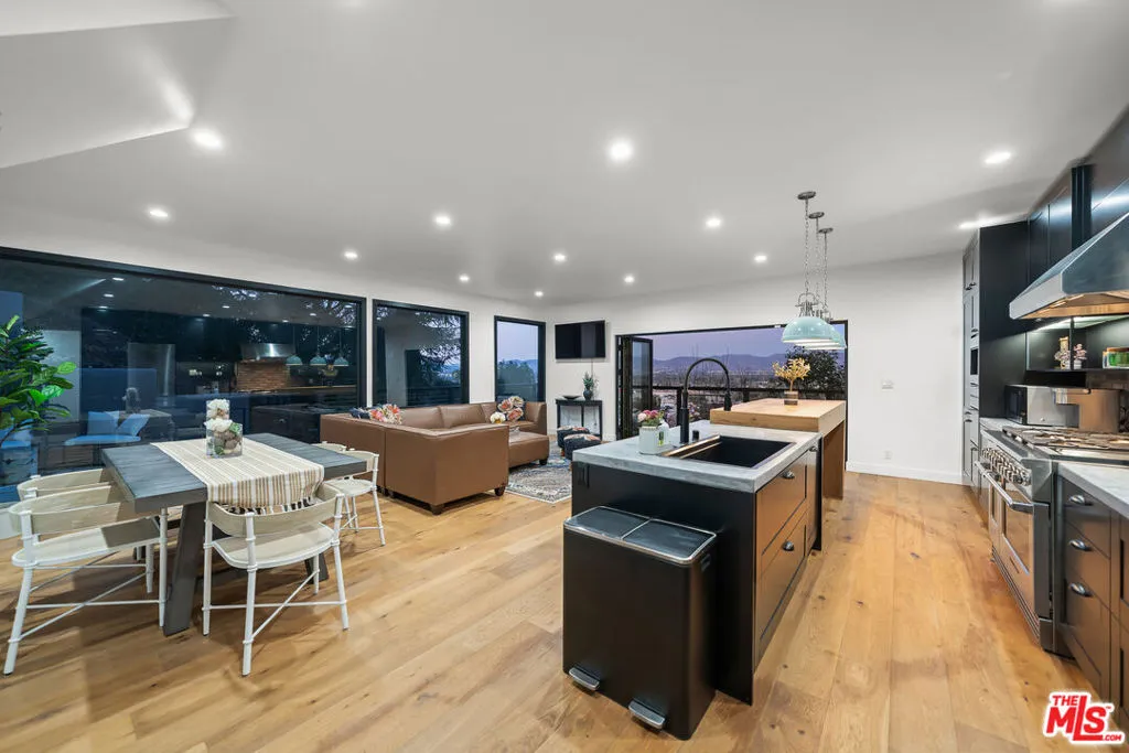 Nestled high above the road, amidst an emerald forest of mature trees, you'll discover a truly exceptional retreataffectionately known as The Round Valley Tree House. This residence has been meticulously reimagined, taken down to its framing and thoughtfully modernized with the utmost attention to detail.Boasting a soaring Modern-Farmhouse design, this home offers unobstructed panoramic views, thanks to an open-concept layout and a striking floor-to-ceiling retractable glass wall. Expansive viewing decks, wide-plank oak floors, warm recessed lighting, and sophisticated architectural features elevate the space, while the gourmet eat-in kitchen is equipped with top-tier appointments, including imported French cabinetry and premium Fisher & Paykel appliances.The upper level features a loft-style master suite, where you'll wake up to breathtaking jetliner views of the valley, mountains, and city lights below. Four uniquely designed and elegantly appointed bathrooms add to the home's refined character.The inviting outdoor spaces are equally impressive, with lush, up-lit landscaping, wraparound balconies, an alfresco dining patio, terraced gardens, and even a pair of nostalgic hammock swingseach thoughtfully positioned to capture the stunning vistas in nearly every direction.The Round Valley Tree House offers an unparalleled level of quality, sophistication, and tranquilityan exceptional lifestyle, elevated in every sense.