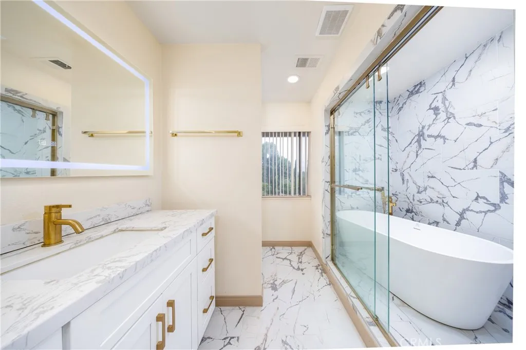 Experience luxury living in the highly sought-after, 24-hour guard-gated community of The Country. This stunning home features 4 spacious bedrooms, an office, a versatile loft, and 4 bathrooms, all thoughtfully designed to provide both comfort and functionality. Situated on an expansive lot with room to expand and stunning views, this property offers elegance with endless possibilities. Step through the impressive double-door entry into a bright and welcoming foyer, highlighted by marble flooring and a striking chandelier. The open living room provides the perfect space for relaxing or entertaining guests. Just a few steps up, you’ll find the formal dining room with its elegant chandelier, leading into the kitchen. The adjacent breakfast nook and family room create a seamless flow, featuring another beautiful marble fireplace and sliding doors that open to a balcony with breathtaking mountain and city light views. The main level includes a luxurious primary suite for added comfort and privacy. Downstairs, you’ll find additional bedrooms and a full bathroom, along with direct access to a second balcony — perfect for enjoying Southern California’s beautiful weather. With recessed ceilings, fresh paint, and abundant natural light throughout, this home offers a warm and inviting atmosphere. Don’t miss your chance to own a piece of this exclusive community — schedule a private showing today!