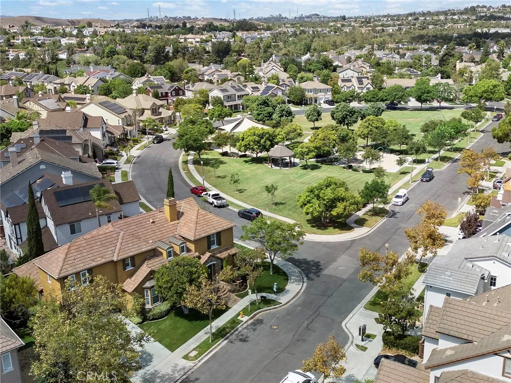 Welcome to 63 Tuberose—a stunning Canopy Lane Plan 4 home located in one of Ladera Ranch’s most sought-after enclaves, just steps from Poets Park, Oso Grande Elementary, and Founders Park. This beautiful corner-lot residence offers timeless curb appeal, expansive indoor-outdoor living, and a thoughtfully designed open floorplan filled with natural light. Step inside to soaring high ceilings, tile flooring, and a truly open layout. The spacious kitchen features white cabinetry, a large center island, and a new dishwasher, making it ideal for entertaining. The adjacent great room and dining area flow seamlessly, while plantation shutters and updated LED recessed lighting add warmth and elegance. A full bedroom and full bathroom on the main level is perfect for guests or multi-generational living. Upstairs you’ll find a generous loft—ideal for a media room, office, or playroom—that overlooks the open space below, enhancing the airy feel of the home. The primary suite is a true retreat, complete with a sitting area, large walk-in closet, soaking tub, separate shower, and dual vanities. Two additional bedrooms, a full bath, and an upstairs laundry room complete the second floor. Enjoy privacy and tranquility in your large yard, finished with updated hardscape, rock features, and newer landscaping. Relax while overlooking Poets Park or entertain with ease on this expansive lot. The 3-car garage with epoxy flooring, extended driveway, newer water heater, and other thoughtful updates complete the package. Ladera Ranch is renowned for its resort-style amenities including a remodeled water park, hiking and biking trails, clubhouses, pools, and top-rated schools. Don’t miss your opportunity to live in one of South Orange County’s most vibrant and connected communities.