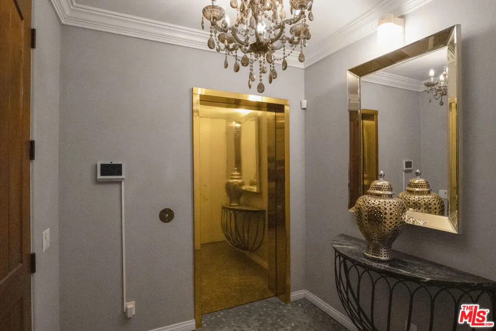 Tucked away in the prestigious hills of Beverly Hills, this private hillside retreat embodies refined luxury and timeless sophistication. Surrounded by lush greenery in the coveted Benedict Canyon area, this elegant estate offers a serene escape just minutes from world-class shopping, dining, and entertainment.Step inside to discover grand living spaces filled with natural light, highlighted by a stately limestone fireplace, a formal dining room perfect for entertaining, and a full-service bar. The gourmet kitchen is a chef's dreamequipped with top-tier appliances and designer finishes. Glide between levels in the striking golden elevator, adding a touch of glamour to everyday living.The primary suite is a sanctuary of comfort, featuring a cozy fireplace, expansive walk-in closet, and a spa-inspired bathroom with luxurious finishes. Outdoor living is equally exceptional relax by the heated pool surrounded by mature landscaping and manicured gardens, creating the perfect backdrop for quiet mornings or evening gatherings.This home is also outfitted with a premium surround sound system throughout, ensuring the ambiance matches your every mood. Ideal for high-profile buyers seeking privacy, tranquility, and elegance in one of L.A.'s most sought-after neighborhoods.