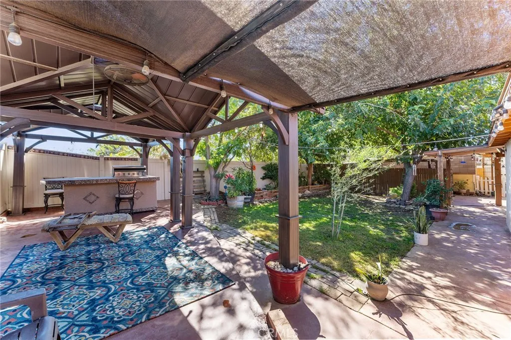 Welcome to a home that feels both spacious and warm. Set in Banning’s desirable Snow Creek neighborhood, this single-story residence offers about 2,000 sq ft of thoughtfully designed living space, blending comfort and style throughout. Step inside to a light-filled open layout anchored by an enormous custom kitchen with abundant counter space and cabinetry—perfect for holiday gatherings or quiet family dinners. The kitchen flows naturally into a cozy family room with a classic fireplace, creating the ideal heart of the home. The primary suite provides a true retreat with a private bath and an extra-large walk-in closet. Two additional bedrooms include an oversized third bedroom, giving you flexible space for guests, a playroom, or a home office. Outdoor living is equally inviting. The backyard features a Blaze professional outdoor grill with custom island and mini-fridge, two Allen + Roth steel-frame gazebos, and mature shade trees that keep summer afternoons cool. A nearly $10k hurricane-rated perimeter fence ensures privacy and lasting durability. A powered shed offers bonus space for hobbies or storage, and the attached 2-car garage adds everyday convenience. Close to shopping, dining, and commuter routes, this Snow Creek home combines open spaces, modern upgrades, and timeless comfort—ready to welcome its next owner.