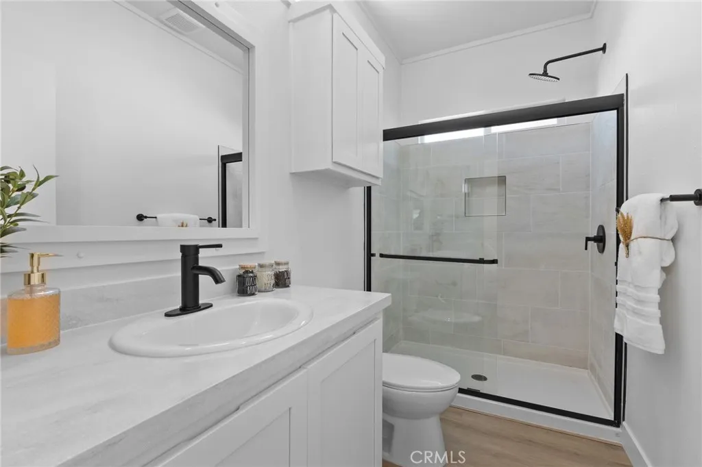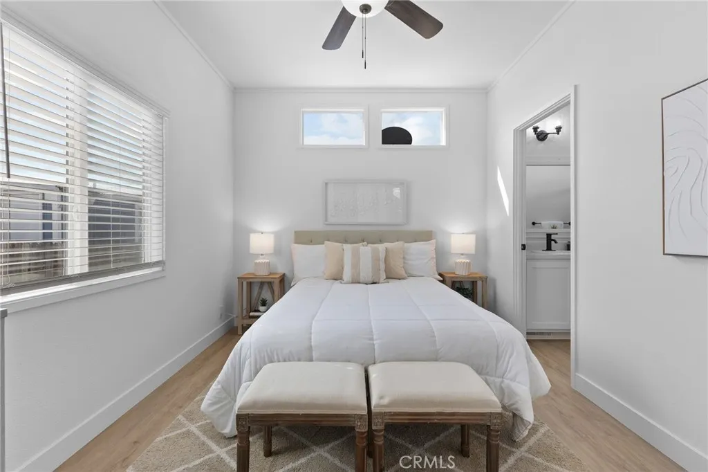 The primary suite offers an ample closet, ceiling fan, and a private bath with a walk-in shower. A generously sized second bedroom and nearby guest bath complete the layout.