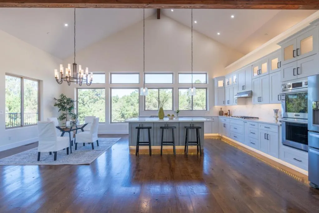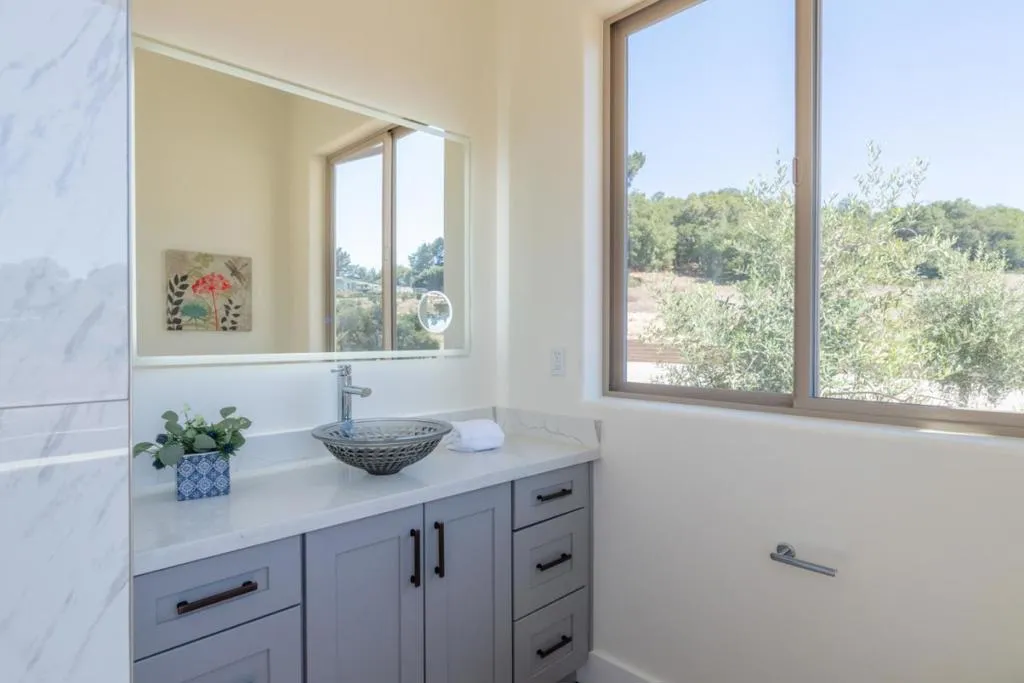 Welcome to the new built, exquisite 4-bed, 4.5-bath home in the gated community of Cathrein Ranch. The main residence spans 3,213 sf (3 bed/3.5 bath), while the attached 790 sf ADU offers a private 1 bed/1 bath retreat, ideal for guests, extended family, or rental income. The chefs kitchen features a gas cooktop, double oven, microwave, dishwasher, refrigerator, and Energy Star appliances. Hardwood and tile flooring flow throughout, complemented by solar panels for energy efficiency. Enjoy cozy evenings by the fireplace in the separate family room and gather in the spacious dining area wi/ breakfast bar. The ground-floor primary suite includes a walk-in closet, oversized tub, and stall shower. Architectural highlights include vaulted and open beam ceilings, a security gate, and a generous laundry room with electric and gas hookups. Step outside to an expansive tile-floored deck with a wood-beamed roof, ceiling fans, and sweeping views perfect for entertaining or relaxing in comfort. This home also features a 3-car garage and Level 2 EV charger. Conveniently located within the Lagunita Elementary School District and just minutes from Hwy 101, Hwy 1, Monterey, Carmel, and a wide array of shopping, dining, and coastal attractions, this home offers both tranquility and accessibility.