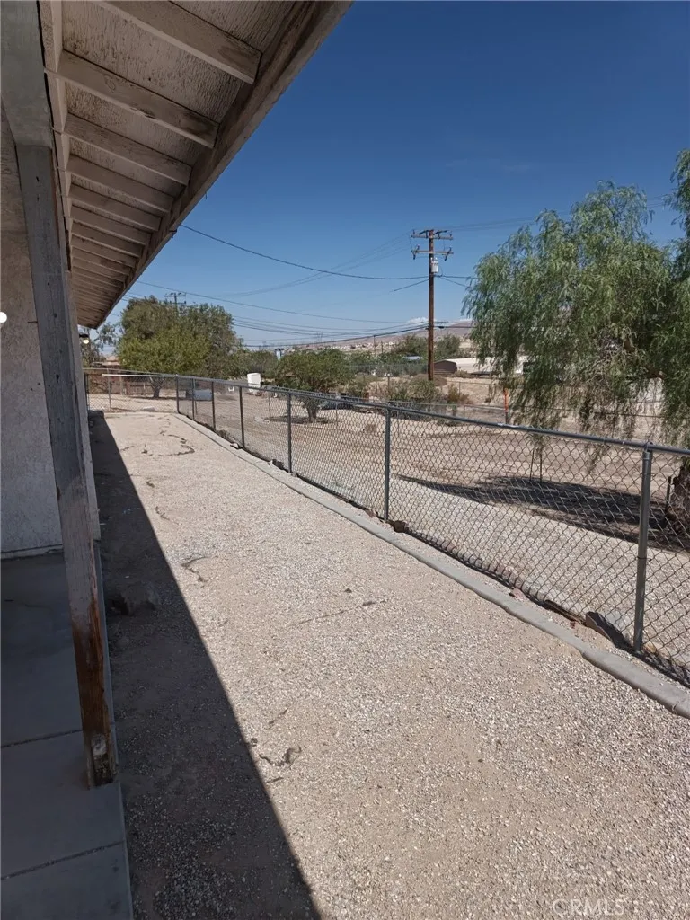 Welcome to this Charming Desert Home. The home features new flooring throughout the home. Freshly painted interiors create a bright and inviting atmosphere. Three generously sized bedrooms, each equipped with a ceiling fan. Spacious master bedroom featuring an attached master bath. Living room with a cozy fireplace. Kitchen includes a sliding glass door that opens directly to the covered patio. This house also has a new roof and paint inside and out Large, covered patio, ideal for gatherings and relaxation. Expansive backyard, enclosed by two separate fences. The first fenced area offers a cozy, private outdoor space. The second, large area is suitable for a garden, pool or quite retreat If your seeking a home with ample space to bring your vision to live, this property provides the perfect opportunity.