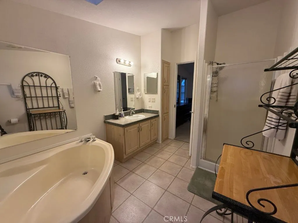 Welcome to Casa Grande Estates, one of Escondido’s most desirable 55+ communities! This well-maintained home offers a spacious floor plan with 2 bedrooms plus a versatile den—perfect as an office, hobby room, or easily converted into a 3rd bedroom. High ceilings, skylights, and large windows fill the interior with natural light, creating an inviting and airy atmosphere. The kitchen is designed with plenty of cabinet and counter space, complemented by a pantry, center island, up-to-date appliances, and a reverse osmosis system for purified drinking water. A whole-home water softener adds extra comfort and convenience. The primary suite features a private bathroom with an oversized shower and soaking tub. Additional highlights include central A/C, ceiling fans, full laundry room with washer/dryer, and fresh updates throughout. Outside, enjoy a covered front porch, fenced yard ideal for a small pet, and a storage shed for extra convenience. Covered parking for two vehicles is included, with guest parking nearby.