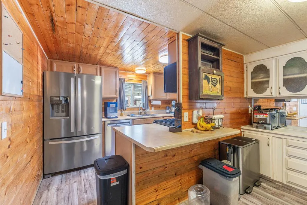 Welcome to Family Friendly Sky Valley Resort! This 3-bedroom 2 bath home is located on a quiet cul-de-sac with low maintenance landscaping and very nice curb appeal. The home boasts a French door entrance, laminate flooring, new stainless steel kitchen appliances, a farm style kitchen, a huge bathroom that serves as a laundry room as well, another gorgeous, remodeled bathroom fully covered carport with ample parking. The home shows pride of ownership and has a clean and warm feel. Other homes in this Resort have recently sold for up to 175,000. Low monthly space rent of 1,068.00 per month. Enjoy the rare and healing hot mineral water in the many pools and spas of gated Sky Valley Resort, including state of the art pickleball courts, horseshoes, basketball, clubhouse, gym, open Desert hiking and beautiful blue skies! Located in the Coachella Valley, with quaint downtown Palm Springs, fine dining and shopping on El Paseo Drive, Old Town La Quinta, Art Festivals, PGA Golf, Indian Wells tennis tournaments, the Acrisure Arena, Coachella and Stagecoach concerts at the Empire Polo Fields and so much more. Perfect permanent home or a warm Winter getaway! Sellers to do no repairs at this price!