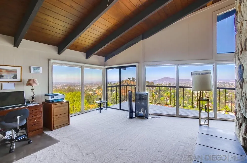A Once-in-a-Generation Mount Helix Estate with Commanding Ocean Views Offered for the first time since its completion in 1974, this irreplaceable legacy residence crowns the prestigious hills of Mount Helix — a setting where panoramic, unobstructed views stretch west to the Pacific and sweep across the northern and eastern horizons. Privately perched on an expansive half-acre promontory, this custom-built estate represents a combination rarely available at any price point: scale, privacy, usable land, and breathtaking multi-directional vistas. In today’s market, opportunities to secure this much view, this much land, and this level of seclusion within such a coveted community are increasingly scarce. Inside, soaring vaulted ceilings elevate the grand formal living and family rooms, anchored by a dramatic double-sided stone fireplace that serves as both architectural centerpiece and gathering place. Generous room proportions, brand-new carpeting, and walls of glass create an ideal foundation for either preserving its timeless character or executing a world-class modern transformation. The primary suite, wrapped in floor-to-ceiling corner windows that capture ever-changing light and sunset skies. Two substantial secondary bedrooms occupy a private wing opposite the master bedroom wing, separated by an oversized bath — thoughtfully designed for comfort and flexibility. The grounds offer both beauty and potential. Mature Meyer lemon and tangerine trees complement the manageable front landscaping, along with plenty of parking in the 3 car garage, 2 car carport & large driveway.