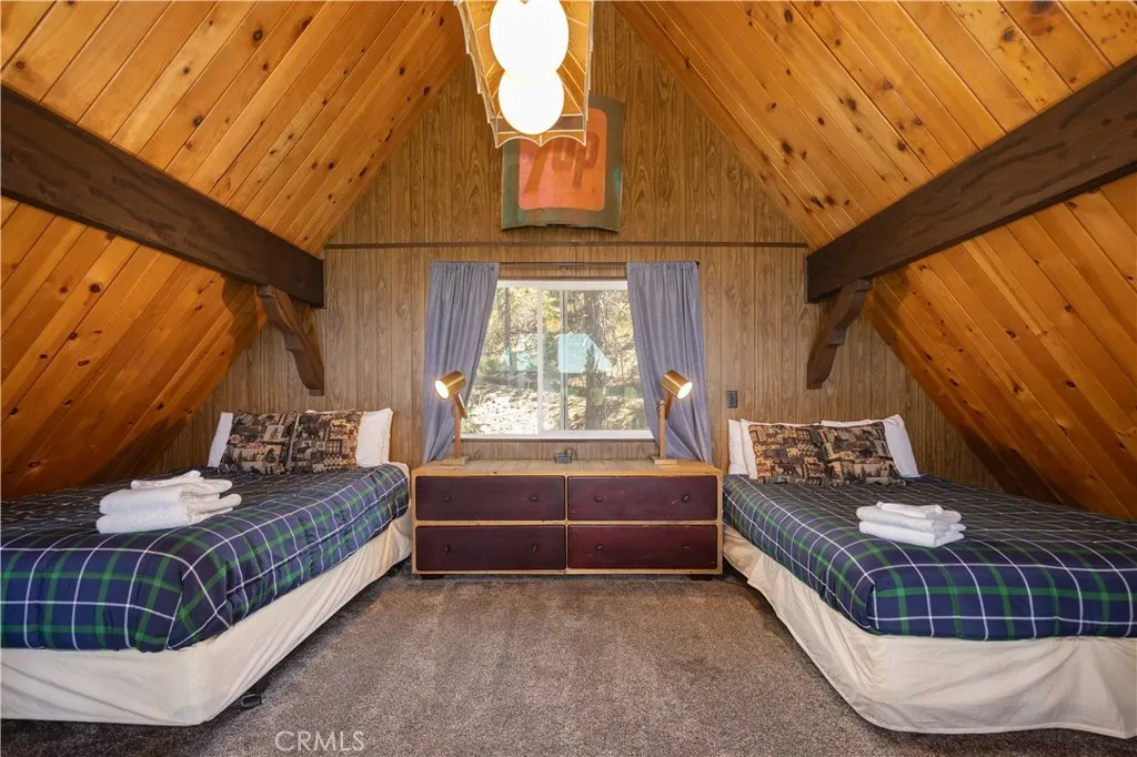 A classic mountain A-frame with a touch of chalet charm, this 3-bedroom, 2-bath home is positioned just west of Big Bear Village, putting the lake, dining, shopping, and four-season adventure within easy reach. Vaulted ceilings and a dramatic wall of windows bring in natural light and frame tree-filled views, while the stone fireplace adds a cozy focal point for the main living area. The open loft overlooks the living room and serves as a versatile flex space, ideal as a fourth bedroom, reading nook, or lounge. On the lower level, a den currently set up as a game room provides even more room to gather or host overnight guests. The floor plan is designed with privacy in mind: bedrooms are set apart, and both the primary and second bedrooms open to their own private decks, perfect for quiet mornings or evenings under the stars. Multiple entertaining spaces make it easy to host family and friends, with plenty of room to spread out or come together. 661 Modoc is more than a cabin, it’s a mountain lifestyle opportunity, whether as a personal getaway, full-time residence, or rental opportunity retreat in one of Big Bear’s most desirable locations.