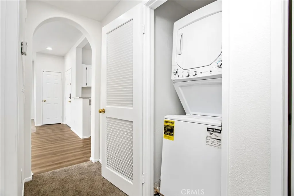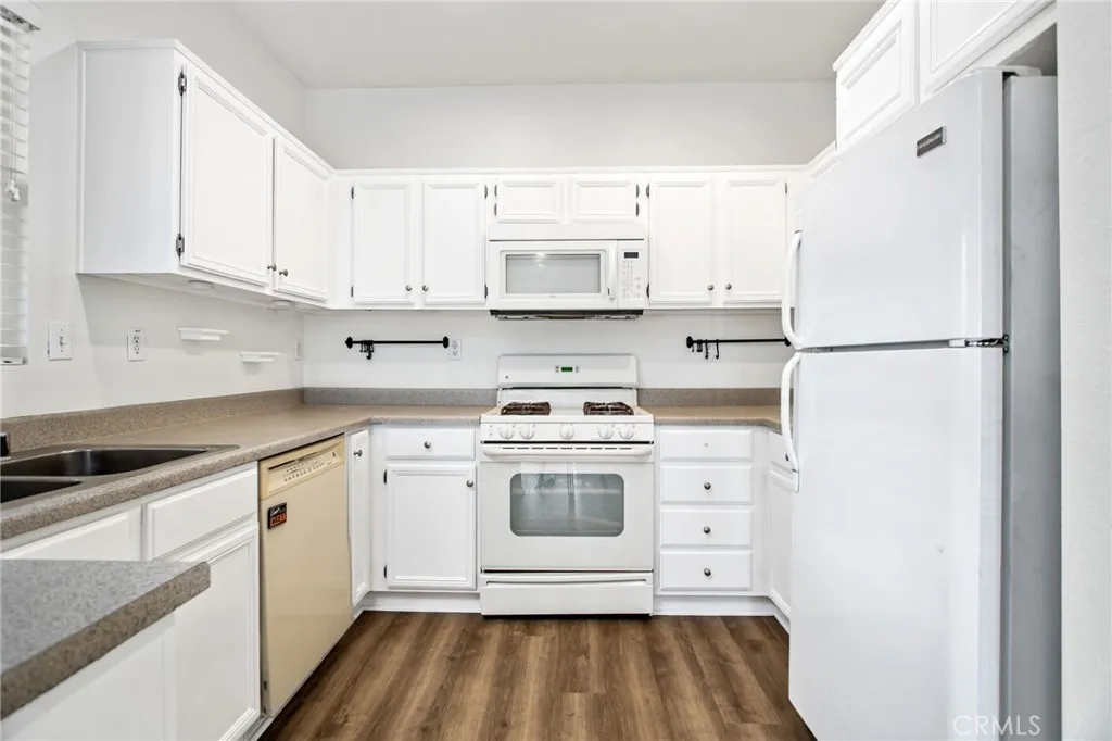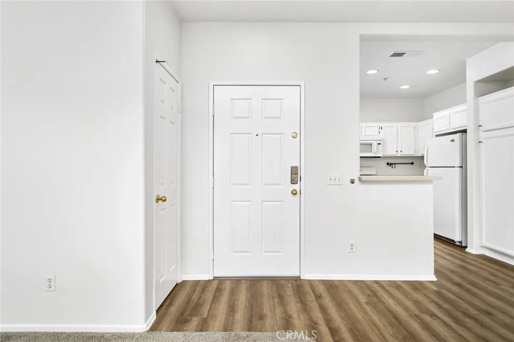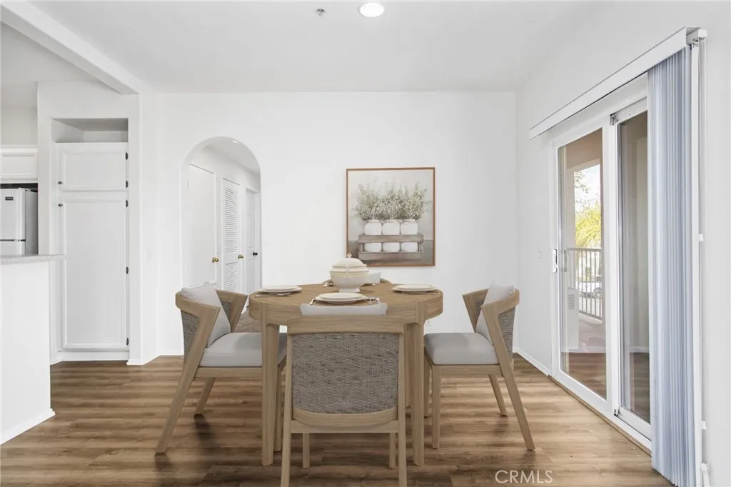 Welcome to 26390 Arboretum Way, Unit 3004 in the gated Verona community in Murrieta. This upstairs 2 bedroom, 2 bath condominium features approximately 890 sq ft of thoughtfully updated living space with fresh paint, new luxury vinyl plank and new carpet. The open floor plan flows from a welcoming entry to a spacious living and dining area with abundant natural light. The kitchen offers freshly painted white cabinetry and storage, seamlessly opening to the dining and living area for ease of everyday living and entertaining. Down the hall, the primary and secondary bedrooms are well-sized with easy access to two full baths, including a glass-enclosed walk-in shower in one and a shower/tub combination in the other.