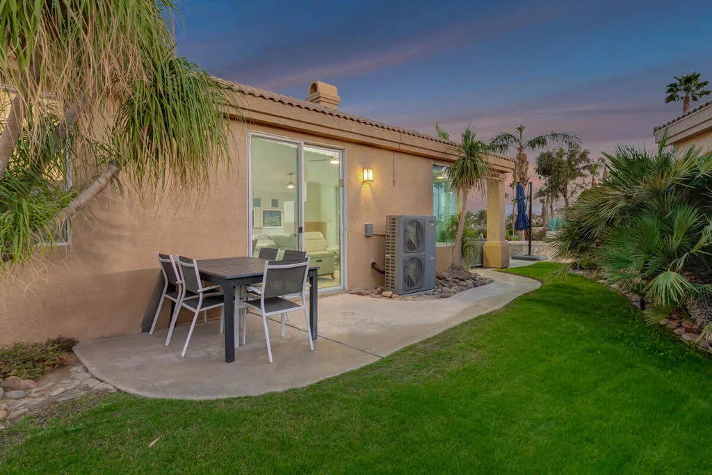 Discover the perfect blend of privacy, upgrades, and scenic beauty at 67361 N. Laguna, a stunning turnkey furnished 3-bedroom, 3-bath home offering some of the best views in the community.Ideally situated near the 6th green on the prestigious Cielo course, this south-facing gem showcases breathtaking views of the pond, fairway, and surrounding mountains--all while enjoying all-day light and warmth without the interruption of golfers.Set on an oversized lot, the home features a private pool and spa, plus a charming side yard ideal for dining and entertaining. Inside, the third bedroom includes a retreat/office area for flexible living. Thoughtfully maintained and updated, the property has been freshly painted, includes all-new appliances, and features a brand-new AC/furnace system installed in October 2024--making it completely move-in ready. Best of all, this home is offered turnkey furnished, so you can step right into the lifestyle without lifting a finger. The land lease has already been extended through 2069, providing long-term peace of mind and added value.Residents of this community enjoy resort-style amenities including multiple pools, three 9-hole golf courses, tennis courts, pickleball, a fitness center, and a clubhouse with dining--ensuring there's always something to enjoy.Perfect as a full-time residence, seasonal retreat, or investment property, this home has a proven rental history, commanding $6,500/month during season.Live the lifestyle you deserve at 67361 N. Laguna--where turnkey luxury, comfort, and panoramic views create an exceptional desert living experience.