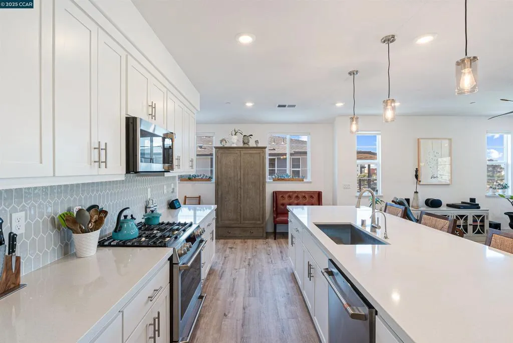Welcome to modern living in the heart of Hayward’s vibrant SoHay community. Built in 2023, this like-new condo offers the perfect blend of comfort, design, and convenience—ideally located near shops, top-rated schools, freeway access, and BART for an effortless Bay Area lifestyle. Step inside to an open-concept floor plan where sunlight pours through expansive windows, filling the main living area with warmth and energy. The stylish kitchen features stainless steel appliances, a walk-in pantry, and an oversized island—perfect for meal prep, casual dining, and entertaining. Retreat to the spacious primary suite, complete with a large walk-in closet and oversized ensuite bathroom offering both comfort and privacy. A second generously sized bedroom also features its own walk-in closet, making this home ideal for guests, remote work, or a growing household. Enjoy quiet evenings on your private patio with no rear neighbors, and take in peaceful sunset views. Additional highlights include a one-car garage with extra storage and all the benefits of newer construction, including energy-efficient systems and modern finishes throughout. This is low-maintenance luxury living in one of Hayward’s most connected and desirable communities—don’t miss your chance to call it home.