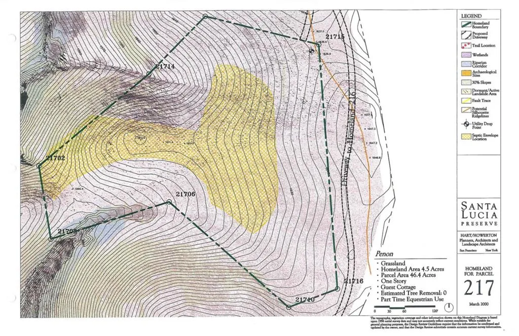 Beautifully situated atop a sun-drenched hilltop in the private Santa Lucia Preserve, rests this sprawling 46± acre, homesite with dramatic 360-degree views of the Pacific Ocean, diverse mountain views of dense redwood forests and grasslands. The very large and usable 4.53- acre building envelope allows for a main residence, a guest house, ADU, barn (for horses, cars, or other recreation) and is part-time equestrian approved. Both private and just minutes to the Clubs amenities, this lot has best of both worlds. The Preserve is a premier private 20,000-acre Community, limited to just 300 owners with world-class amenities, including a top-rated Tom Fazio golf course, 100 miles of scenic trails, an equestrian center, fitness facilities, pools, tennis and pickleball courts, and a serene lake for paddling and fishing. Resident services staff, a fire department and paramedics, fuel management plans, a surplus of water storage & additional safety measures are in place for your enjoyment of living in the exquisite nature setting. Experience the perfect balance of seclusion and convenience in this extraordinary Community. Utility conduits, water, & fiber optics are brought to the beginning of the homesite.