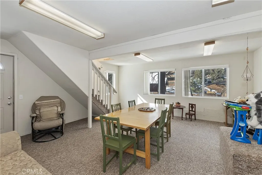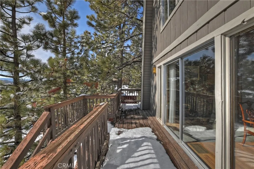 Welcome to this 3-bedroom, 2-bathroom home located in the desirable Whispering Forest neighborhood. Offering 2,848 sq ft of living space on a 10,800 sq ft lot, this property provides comfort, flexibility, and views. The main living area is filled with natural light and connects seamlessly to the kitchen, dining area, and a sunken seating area with a fireplace. Multiple decks provide outdoor living space with ski slope views. The main level includes two bedrooms, while the upper-level primary suite offers privacy and includes an attached office. In addition, three bonus rooms allow for flexible use such as guest space, gym, or additional work areas. A two-car attached garage adds convenience and storage. With its versatile layout and peaceful setting, this home is an excellent opportunity in Big Bear.