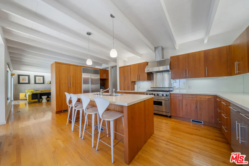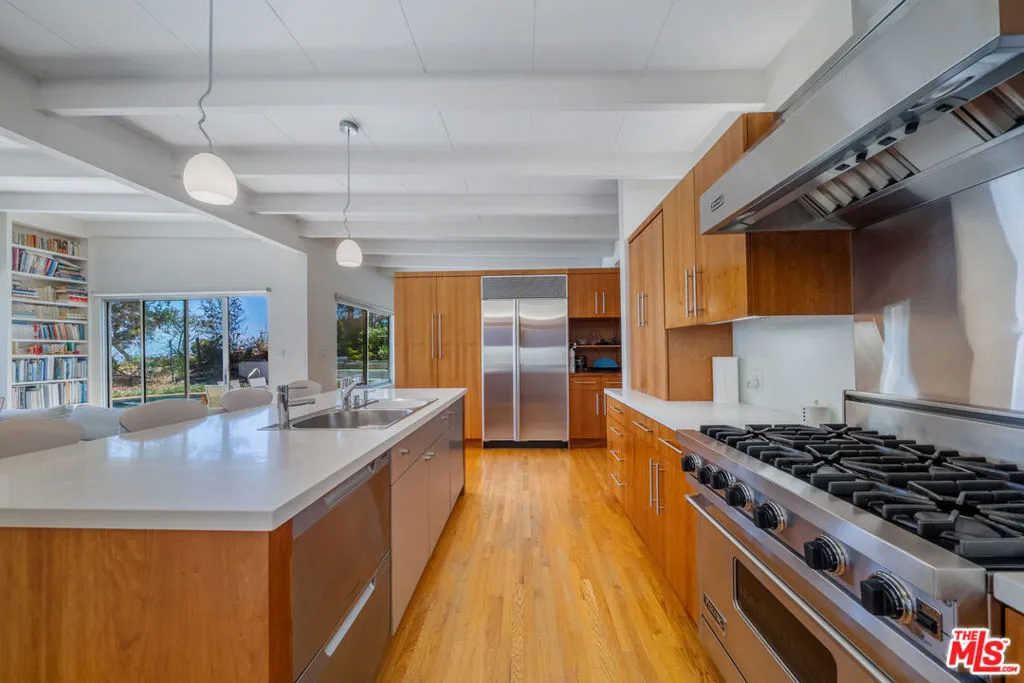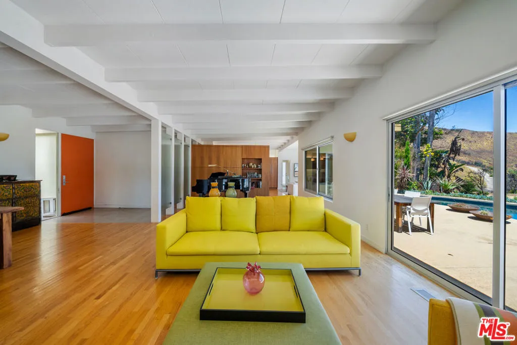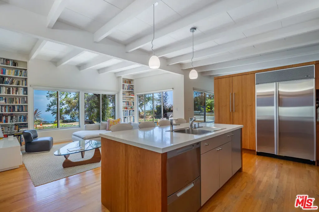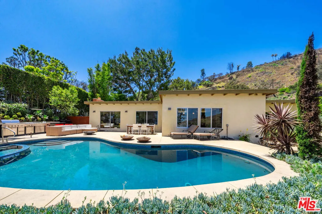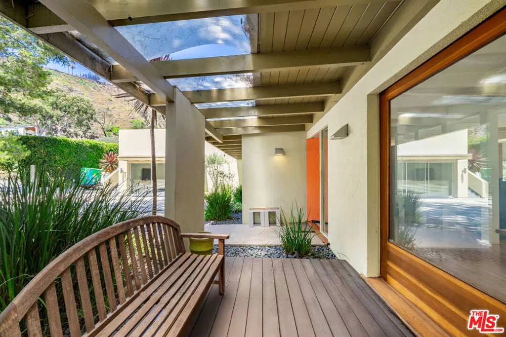 Perched above the Pacific in Malibu's coveted Big Rock community, this extraordinary Mid-Century Modern home offers a rare fusion of sophistication and serenity. Owned by the same family for many years and painstakingly improved with meticulous care year after year, the residence embodies both timeless craftsmanship and modern refinement. Thoughtfully expanded with intentional square footage, it now includes a versatile flex space and dedicated office, complementing the home's original architectural integrity. Designed with the essence of a Zen retreat, this ultra-private 4-bedroom, 3-bath gated masterpiece once featured in Sunset Magazine effortlessly balances organic textures with timeless contemporary elegance. Every detail has been carefully curated, from warm wood finishes and artisanal tile work to striking designer accents and top-tier materials that elevate the home's aesthetic. Walls of glass invite natural light to cascade through open-concept living spaces, creating a seamless indoor-outdoor flow that enhances both intimacy and entertainment. Step outside to a resort-style oasis featuring a saltwater pool and spa, lush grassy yard, an incredible ocean view, fire pit lounge, and an alfresco kitchen with a fully equipped BBQ all framed by ocean breezes and tranquil greenery. Ascend to the private rooftop deck for panoramic sunrises and sunsets that stretch across the Pacific Ocean and Queen's Necklace. Sustainable living is also woven into the home's core, with full solar power, two Tesla Powerwalls, an EV charging station, and dual gated access to a circular driveway. Ideally located just minutes from Santa Monica, central Malibu, and some of California's most iconic beaches and hiking trails, this is coastal living at its most refined.