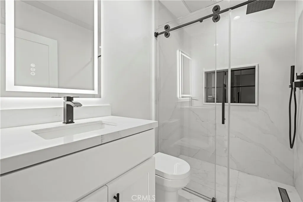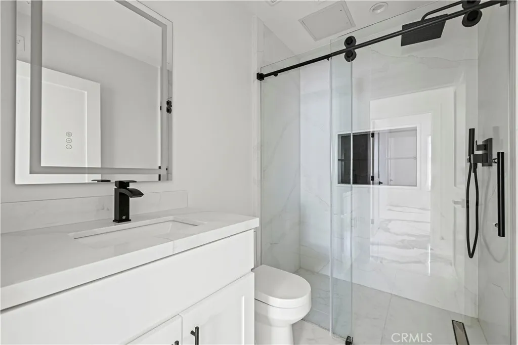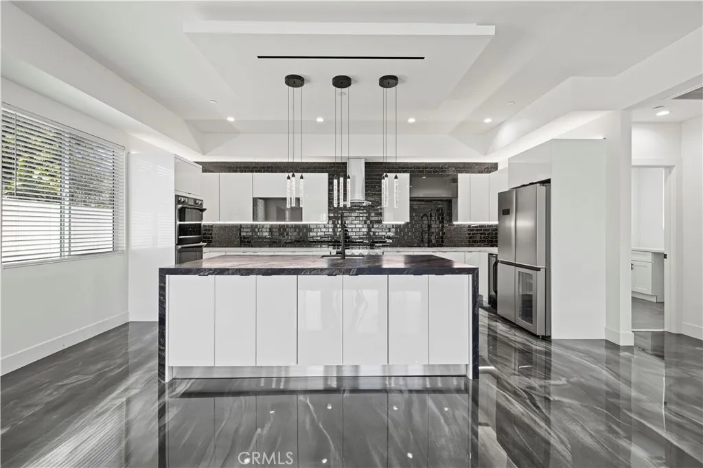 Welcome to this stunning brand-new modern residence built in 2025, located at 15209 Cohasset St, Van Nuys, CA. This contemporary 4-bedroom, 3.5-bathroom home spans an impressive 2,391 sq ft and offers a perfect blend of luxury, comfort, and functionality. Property Highlights: Spacious Floor Plan: Open-concept living with soaring ceilings, perfect for entertaining and everyday living. Gourmet Kitchen: Equipped with top-of-the-line stainless steel appliances, a massive waterfall island with modern pendant lighting, sleek high-gloss cabinetry, and an elegant black marbled backsplash. Elegant Finishes: The home features high-end polished floors with a stunning marble-like effect, recessed lighting, and a built-in contemporary fireplace that serves as the focal point of the living area. Primary Suite: Luxurious master retreat with a private bathroom featuring a dual-sink vanity, a frameless glass shower with matte black fixtures, and modern design details throughout. Additional Bedrooms & Bathrooms: Each room is bright and spacious, with ample closet space and stylish finishes. The bathrooms are tastefully designed with marble-style tile work and illuminated mirrors. Outdoor Space: Enjoy a beautifully landscaped yard with modern drought-tolerant plants, redwood mulch, and a clean, contemporary aesthetic. Parking & ADU Information: The property includes ample parking with designated spaces for both the main house and the rear ADU (Accessory Dwelling Unit). Main House: Access to a covered carport for secure parking. ADU: Rented separately with its own parking area. Driveway: Spacious and designed to accommodate multiple vehicles with ease. Additional Features: Central HVAC system for year-round comfort Energy-efficient windows allowing for plenty of natural light Smart home features and modern lighting fixtures Solar Prime location close to shopping, dining, schools, and easy freeway access This home is ready for immediate move-in, offering a sleek modern lifestyle in the heart of Van Nuys. Don’t miss the opportunity to live in a newly constructed home that combines cutting-edge design with practical living spaces. Contact us today to schedule a private showing and make this stunning residence your new home!
