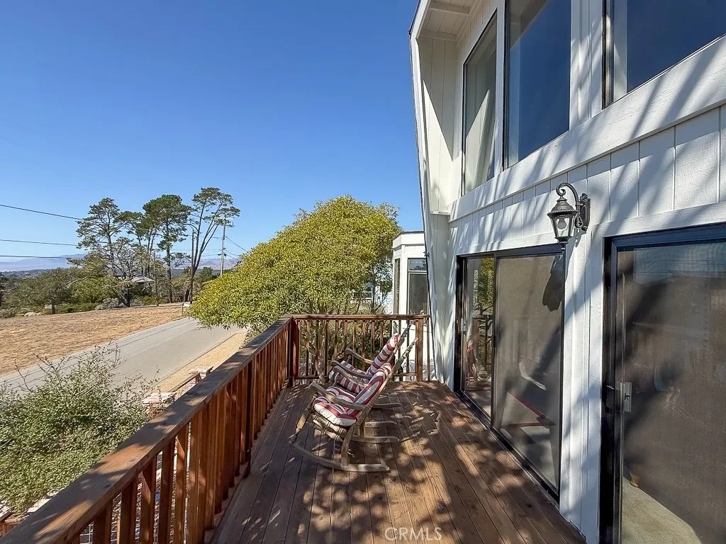 Welcome to 1570 Richard Avenue, a light-filled 3-bedroom, 2.5-bathroom home with 1,740 sq. ft. of living space, nestled in Cambria’s desirable Top of the World neighborhood. Expansive glass windows showcase distant ocean views and flood the home with natural light, while high ceilings in the main living area create an open, airy atmosphere. Deer and wild turkeys frequently wander the peaceful surroundings, adding to the property’s charm. The home’s thoughtful layout features a bedroom and bathroom on each level. The primary loft suite includes a walk-in closet, bathroom, and serene forest-to-ocean views. On the lower level, a spacious guest suite doubles as a versatile bonus room, with double doors leading to a private patio. The second guest bedroom on the 2nd floor also opens outdoors, with French doors leading to the back deck—perfect for your morning coffee or unwinding with nature. The main living area is ideal for entertaining, flowing seamlessly to the deck where gatherings are enhanced by ocean breezes and coastal views. Recent upgrades include brand-new redwood decks and a new roof, offering peace of mind and long-term value. Additional highlights include a fenced backyard and a spacious attached two-car garage. Currently licensed as a vacation rental with no history, this property is both a tranquil personal retreat and a smart investment opportunity.