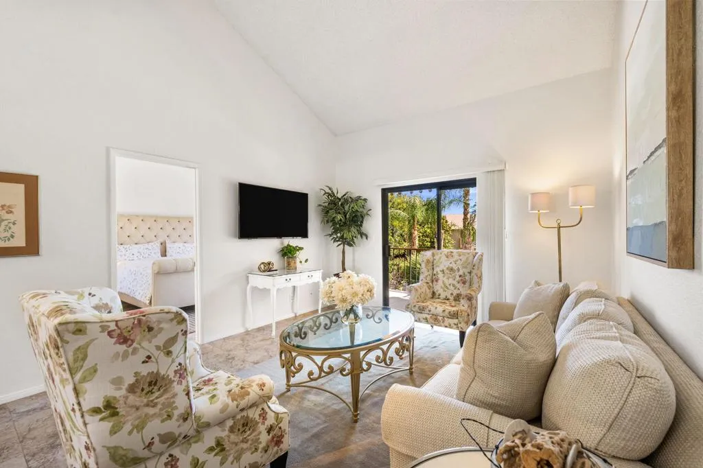What a find! This charming 2BR/2BA upstairs condo checks all the boxes--granite counters, fresh paint, crisp white cabinets, vaulted ceilings, and gorgeous views! The kitchen has all new stainless steel appliances including refrigerator. Spacious bedrooms with nice separation for privacy.Step onto your private balcony to soak in serene lake and pool views, complete with a storybook gazebo. The community grounds are beautifully landscaped (with friendly resident ducks!) and offer tennis & basketball courts, gated security, workout room, single car garage, and a prime location close to shops and dining.And here's the best part--you're just minutes from the world-famous music festivals!