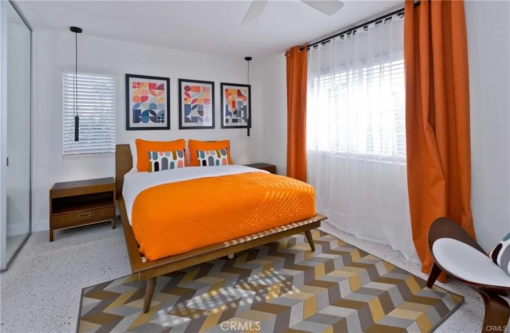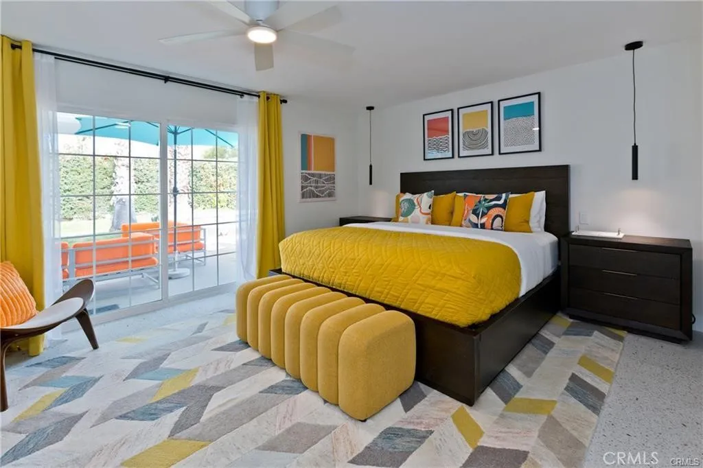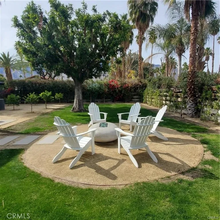 short term rental or Monthly! Summer rates will be around $4000.00 per month, Winter months around $15000.00 / $18000.00 Welcome to Escoba Ranch, a fully remodeled and spacious three-bedroom home located just minutes from downtown Palm Springs and the Palm Springs International Airport with a massive private yard. Our large and private corner lot offers stunning views of the San Jacinto Mountains, accompanied by a salt water pool and jacuzzi, a 45-foot covered patio, a citrus orchard, a fire pit lounge, an outdoor shower, dual garage (with AV charger) all surrounded by a variety of palm trees, cacti, and desert flowers. Interior Highlights: This home is fully furnished! The open floor plan living and dining area features a 75-inch TV, a cozy fireplace, and an extra-large dining room that opens to the outdoor living area. The well-appointed kitchen is equipped with all the amenities needed to entertain and enjoy your stay in Palm Springs. Location Situated in the Los Compadres neighborhood of southeast Palm Springs—well south of the wind zone—Rancho Vista Del Sol provides quick access to the city's vibrant heart, including its restaurants, museums, shops, and galleries. We are conveniently located on the new Palm Springs CV Link (Coachella Valley bike path) and are just minutes away from the Prescott Nature Preserve, dog parks, and the Araby trail system, which leads to the famous Bob Hope House and beyond. Primary Suite: The luxurious primary bedroom serves as a private oasis, featuring a plush king-size bed with a beautiful wood headboard. A large sliding glass door allows natural light to illuminate the rich terrazzo floors and sleek mid-century modern furnishings. Additionally, there is a large-screen smart TV that can be neatly tucked away when not in use. A spacious closet provides ample storage, while the en-suite bathroom boasts a dual vanity with quartz countertops and an oversized walk-in shower complete with a rainfall showerhead and designer tile work. Second Bedroom: It features a queen-size bed, restored mid-century nightstands, and a large 65-inch TV. A large window frames picturesque mountain views, ensuring guests wake up to stunning desert landscapes. A well-appointed closet and stylish accent lighting round out this comfortable space. Third Bedroom: . Decorated with subtle mid-century modern touches and European wallpaper, this space combines practicality and style through soft textiles, fun wall treatments, and ample storage.