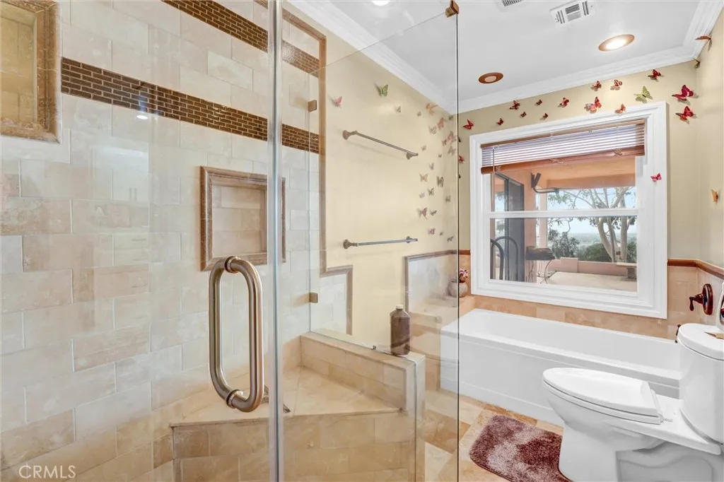 Property has the most amazing VIEWS and great privacy! When you enter through the double doors you are greeted with a beautiful arched wood ceiling in the foyer. Look straight ahead and you will be impressed with the views of the valley through the large windows across the generous living areas. The living areas are divided with a double sided fireplace. The chef's kitchen gives you ample views of the living areas so you always have your eyes on family and are apart of the fun. The home boasts large bedrooms with great natural light. The master bathroom has fantastic light and is a wonderful space for getting ready. The front yard has mature landscaping and invites your guests into the front of the home. Deer are common and traverse the hillside and make a great place to sit and enjoy your privacy on the covered front porch. The detached three car garage is great for automotive enthusiast and is surrounded by ample parking. Bring all your toys!
