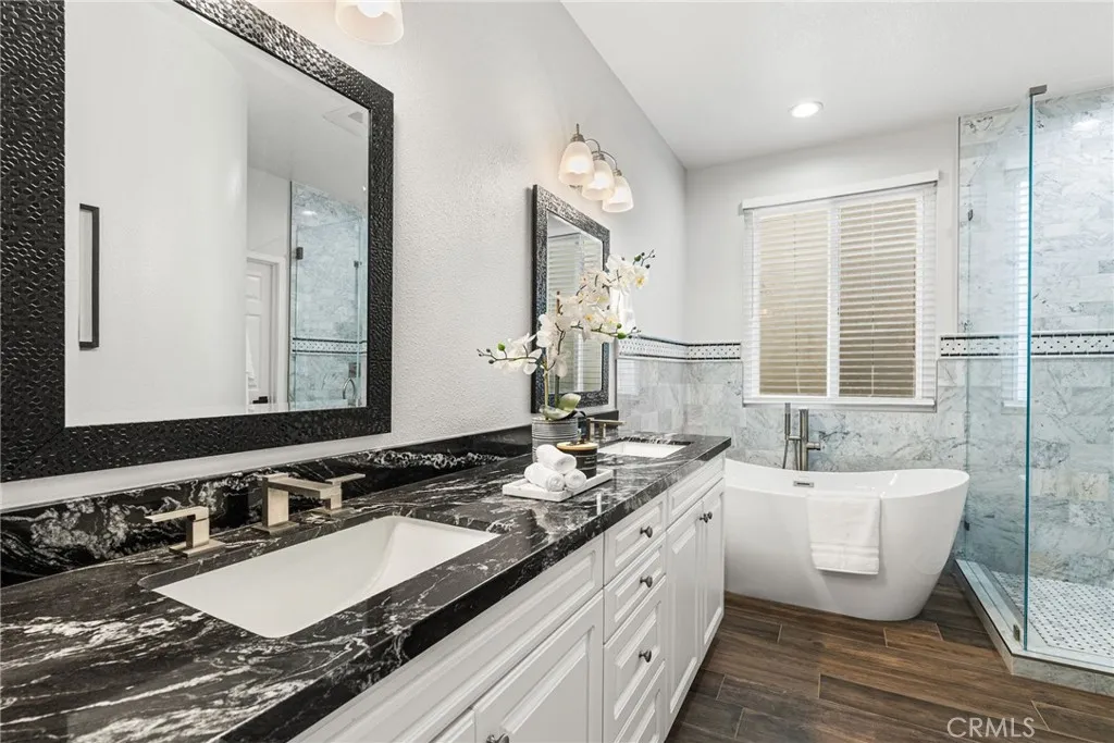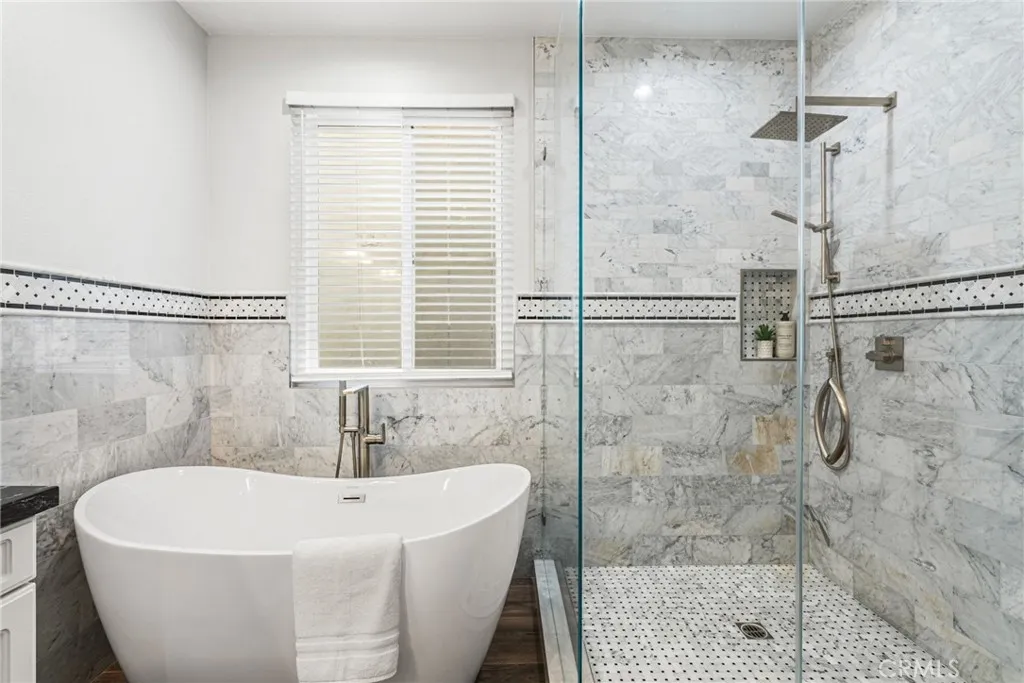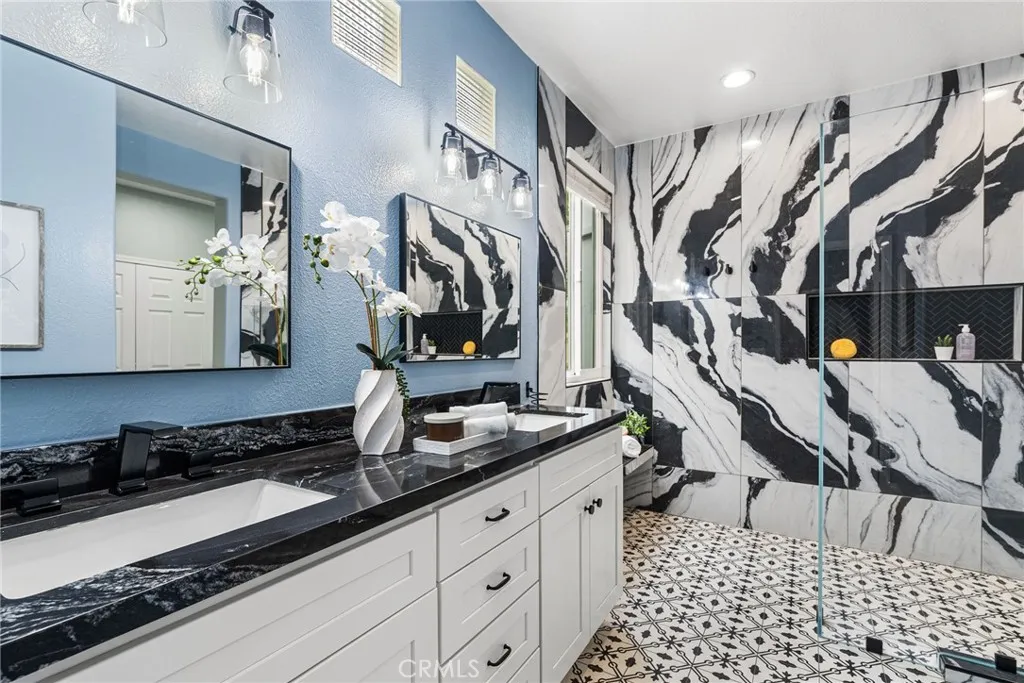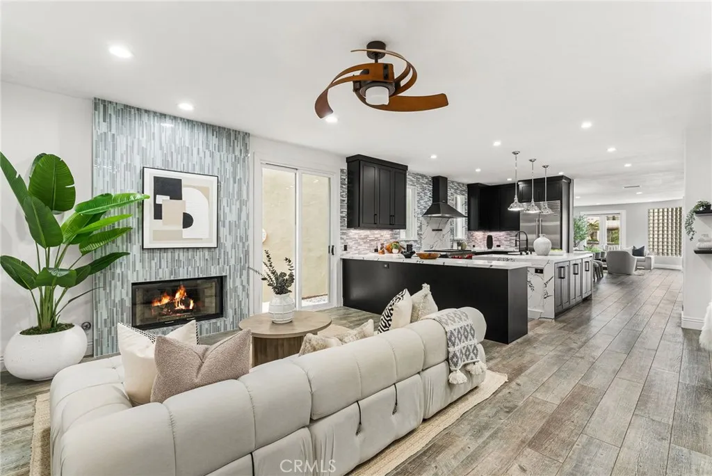 Sophisticated Coastal Living in Downtown Huntington Beach. Experience the epitome of luxury in this fully remodeled, highly upgraded, stunning Ocean Pointe residence, ideally located just five blocks from the sand and crashing surf in one of HB's most coveted and serene enclaves. Spanning over 2,765 square feet of light-filled interiors, this home offers an impressive blend of refined design, thoughtful functionality, and timeless elegance. Step inside to discover a beautifully updated home featuring dual primary suites and three bedrooms in total, each with its own spa-inspired, recently renovated en-suite bathrooms and custom closet built-ins. One of the primary suites has a glowing fireplace and balcony with French Doors. Enter into an open living and room with fireplace and French Doors opening to the outdoor patio for alfresco dining. The separate, inviting family room adjacent to the kitchen that showcases a custom fireplace with new surround and bespoke built-ins, creating the perfect space for gathering and relaxation. The chef’s kitchen is a masterpiece—complete with an expansive quartz waterfall island, new designer backsplash, custom cabinetry, walk-in pantry, and professional-grade stainless steel appliances from Wolf and Sub Zero. Every detail has been considered, from the artisanal staircase railing to the custom lighting, dual-pane windows, motorized window coverings, and wide-plank wood-look porcelain flooring throughout. Modern conveniences include ductless AC with individual room controls, a tankless water heater, and a spacious upstairs laundry room. Enjoy seamless indoor-outdoor living with a professionally designed front patio featuring custom hardscape, lush landscaping, and designer lighting. A private third-level deck offers the perfect retreat for sunbathing or adding a spa for ultimate relaxation. The immaculate garage offers new epoxy flooring, EV charger, cabinets, overhead storage and glass garage door. There is a driveway in the rear to park an additional car. Nestled in a quiet location yet just moments from the beach, Pacific City, award-winning schools, the pier, and vibrant downtown dining and entertainment—this is the perfect balance of luxury and coastal lifestyle. Immaculate and meticulously maintained - Turn-key ready for the next lucky owners!