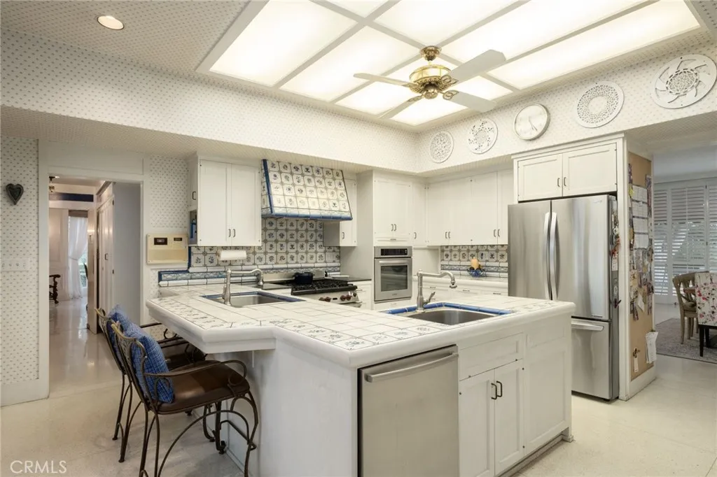 This 1928 Sunset Boulevard Mediterranean Revival residence, situated on a 1.76 acre lot on Christmas Tree Lane in Old Fig Garden, was designed by renowned architect Rafael Lake for the Bernhauer family. As President of the then Fresno Planing Mill Co., Mr. Bernhauer infused his vision and craftsmanship into every detail of this home, which includes Mahogany millwork archways, coffered ceilings and so much more. As you enter thru the Arch Top Mahogany Double Doors, you are greeted by a Grand Foyer and a beautiful curved staircase. To the right is the Spacious Formal Living Room offering a stunning Fireplace, an adjacent elevated sitting space, and to complete this wing of the home, an Isolated Bedroom w/En-Suite Bath. To the left of the Foyer is the grand Formal Dining Room, boasting a Curved Bay Window that floods the room with natural light and can accommodate a large gathering of family and friends. Two Butler Pantries, both with sinks and an abundance of counter space, expand on the spacious Kitchen space for entertaining. A second staircase to the upstairs is situated between the two Butler Pantries, as well as the stairs to the basement which boasts a beautiful Wine Room. The Chef's Kitchen features Exquisite Portuguese Tiles, Wolf Range, Wall Oven, Built-in Refrigerator, Built-in Griddle, Informal Dining Area, and a Pantry. A lovely Studio/Family room is located adjacent to the Kitchen and offers a Fireplace and a wall of Shuttered Windows, which makes it a perfect room for relaxation. The over-sized Laundry Room featuring a Sink, ample Counter Space, Washer/Dryer and a Freezer, plus another Spacious Isolated Bedroom with adjacent Bath complete this section of the home. The Upstairs features the Primary Bedroom with an En-suite Bath, Dressing Area, walk-in Closet and access to a Balcony which views the rear garden. Bedroom # 4 views the front garden, Bedroom #5 features an En-Suite Bath, and Bedroom #6 and #7 which share a Jack-n-Jill Bath complete the Upstairs The Guest House is just steps away from the house and features a Spacious Bedroom, Kitchen with Dining Area, a Shower Bath, plus a storage room, and offers views of the Sparkling Swimming Pool and beautiful Grounds. Other Amenities include a 4+ Car Garage, Tile Roof, on most of the home, Owned Solar, 4 HVAC Units, Potential RV Parking. Completely Fenced Property offering Mature Landscaping. Do not miss the opportunity to make this special property your new home! Call for your private showing.