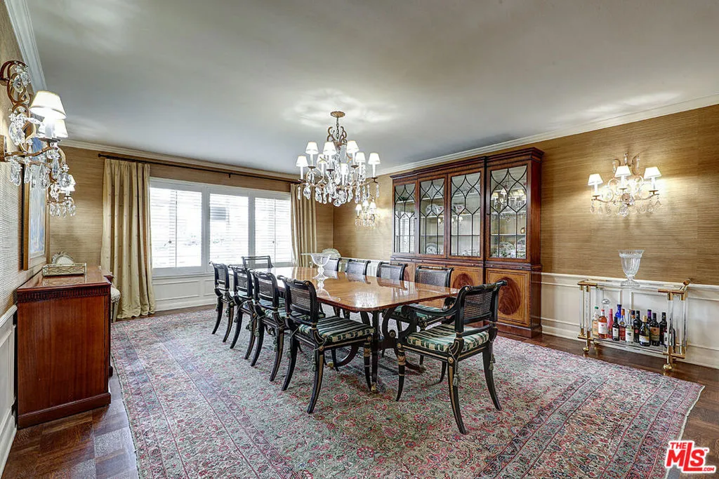 SALE SUBJECT TO BANKRUPTCY COURT APPROVAL AND OVERBID! Perched directly on the legendary 15th hole of the Wilshire Country Club golf course, this 1949 English Tudor Revival masterpiece commands one of Los Angeles's most coveted positions where manicured fairways become your private backyard and the rhythm of the game unfolds just beyond your morning coffee. Within the distinguished Hancock Park Historic Preservation Overlay Zone, this stately residence presents 6,620 square feet of refined living across an expansive 14,207-square-foot lot, marrying seven decades of architectural gravitas with the gracious proportions that define truly exceptional homes. The Interior Journey A formal entryway establishes the home's unhurried elegance, leading to a living room where beamed vaulted ceilings soar above a central fireplace. The formal dining room awaits your most memorable gatherings, while original hardwood floors trace a warm path through principal rooms. Six bedrooms and six bathrooms unfold across two thoughtfully appointed floors. The primary suite transcends mere accommodation a private sitting area, a balcony surveying the golf course, dual his-and-hers bathrooms (hers featuring a dedicated sitting room, vanity, and soaking tub), and generous closet space create a genuine sanctuary. Three additional second-floor bedrooms offer en-suite baths; another provides custom built-in shelving for the collector or bibliophile. A distinctive dual-kitchen configuration with two separate living areas presents exceptional versatility for multi-generational households or live-in staff a quietly sophisticated arrangement increasingly sought in today's finest homes. The main kitchen features a granite-topped island, double ovens, and an adjacent breakfast area. A main-floor office, basement storage, and central climate control complete the interior offerings. The Grounds Southern California's signature indoor-outdoor lifestyle flourishes here. An in-ground pool and spa anchor the rear gardens, while mature landscaping cultivates a sense of secluded retreat. The covered patio ideal for al fresco entertaining frames potential views across the verdant fairways, where the only interruption is the occasional applause from a well-played approach shot. The Address North of Beverly, south of Melrose, east of Highland, and sharing its boundary with one of Los Angeles's most storied private clubs, 322 N June Street occupies the precise coordinates that have defined Hancock Park prestige for generations. Historic architecture. Substantial scale. Golf course splendor. An address of uncommon distinction. The property offers driveway parking with carport. As with residences of this heritage, opportunities exist for selective updates to reflect contemporary preferences.