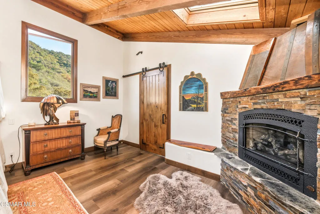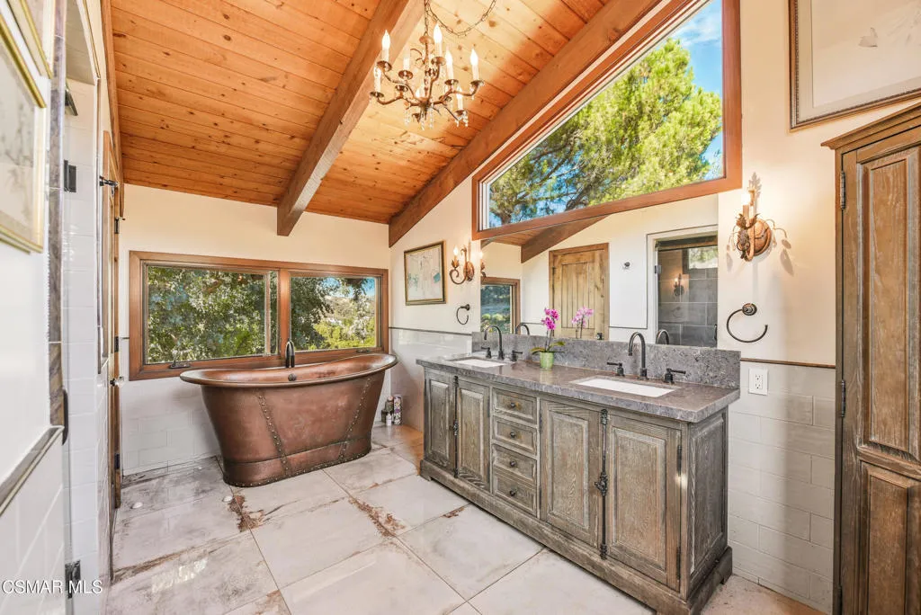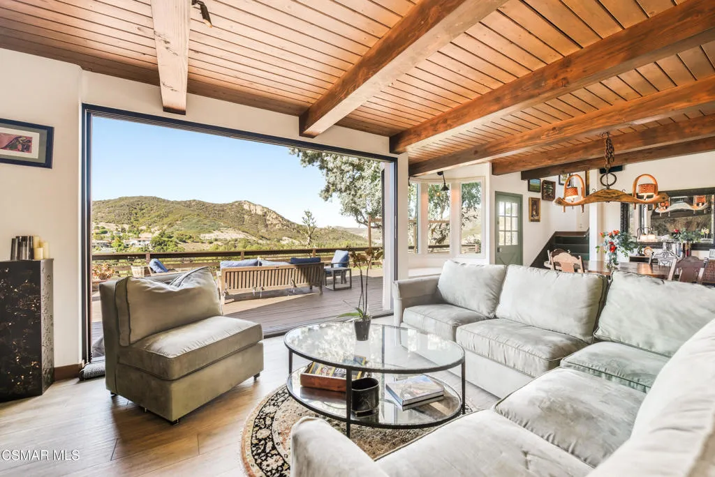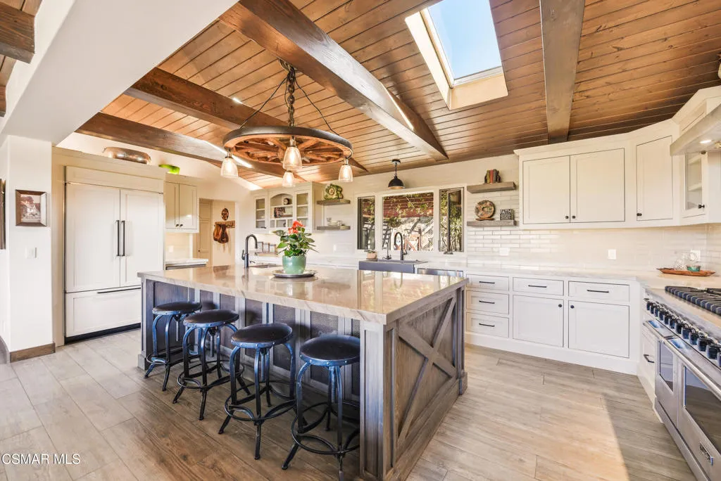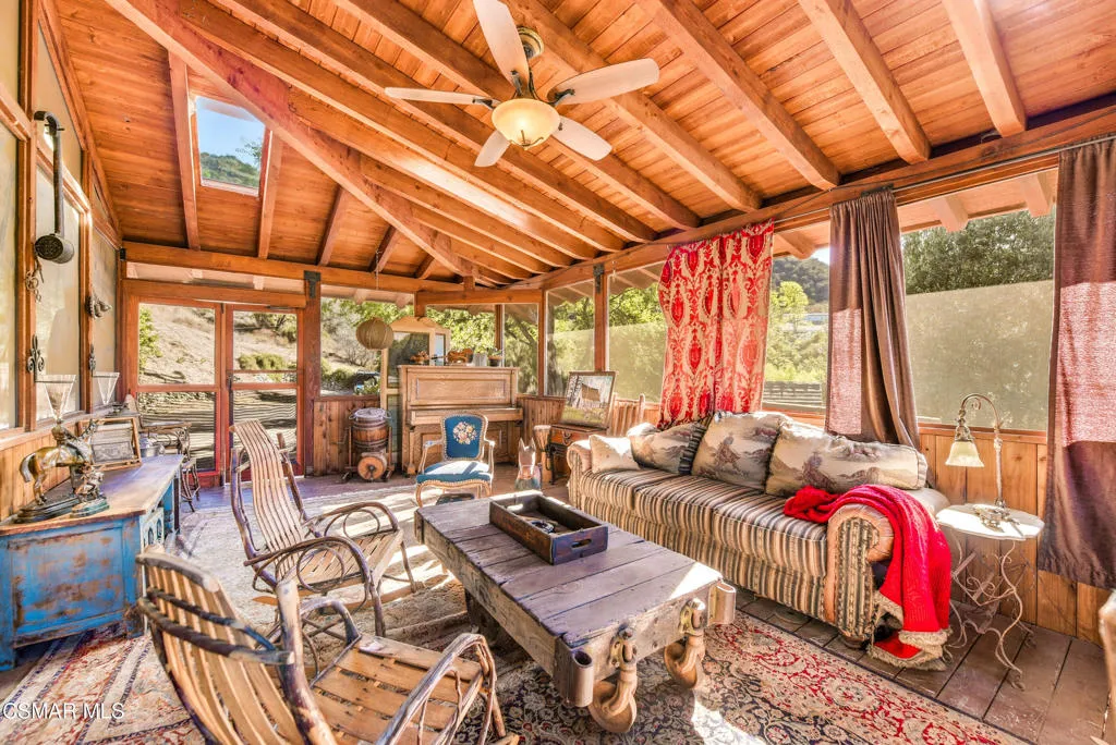 Prospector Ranch Country calm meets Westlake Village convenience 8+ acres along a private road tucked within rolling hills, tall oaks & adjacent to Sherwood Lake Club where you can enjoy golf, swimming & tennis Rare Ventura County retreat blends rustic character w/refined craftsmanship & modern systems throughout Arrive to the Western town, w/saloon & bar, horseshoe pit & string-lit outdoor dining area This Western town isn't just charming; it's a working filming location, event space & money making asset that's become a SoCal favorite for productions & celebrations alike This backdrop has hosted photo, fashion, music, TV & film shoots plus private gatherings & weddingsFeatured on KTLA Channel 5 news, it's also appeared in Jay Leno's Garage w/John Fogerty & editorials for Bazaar, Free People, The Western Medicine Band, NBG Weddings, Carly Jeans Los Angeles & moreCinematic magic under the California sun & supplemental income for its ownersRemodeled 2 story residence (approx. 2k sq ft per sellers) brings the outdoors in w/ceramic tile flooring on the lower level, solid wood doors & hand-crank casement windows throughout Fleetwood triple sliding glass wall opens great room to a broad deck w/mountain & sunset views Taj Mahal quartzite counters, Viking appliances, filtered water system & whole-house filtration from two private wells make the home luxurious & self-sustaining With your own wells, there's no water bill. Newer tankless water heater, abundant cabinetry & storage, walk-in pantry, wine fridge, 3 ovens, below-counter microwave & center island w/its own sink, combining beauty, function & craftsmanship in every detail Mud room connects directly to kitchen & garage for seamless flow Great room soars beneath lofted wood ceilings w/skylights that bathe the space in natural light Stone hearth fireplace built w/stones harvested from the property anchors the room w/warmth & authenticity Open flow allows seating for four at oversized island & gatherings around the dining table, all while maintaining an uninterrupted connection to the outdoors View stretches across your land to the mountains beyond, from winter's snow-capped peaks to sunsets that paint the horizon nightly Primary suite spans the full second floor w/ natural-wood vaulted ceilings, barn doors, heat-a-lator fireplace, ceiling fan & wall of windows framing sublime views The ensuite bath offers a copper soaking tub, heated floors, Toto Washlet & shower-sauna stall Downstairs, two bedrooms share a Jack-and-Jill bath w/ Moroccan-style tilework & spacious walk-in shower Each has closet barn doors & opens to a shared deck overlooking gardens & yard through French doors One bedroom features vaulted ceilings & ceiling fan Guest bath showcases a fossil sink imported from Morocco Just off entry, a screened-in porch bridges old & new, a peaceful space entered from the front path, the back deck or double doors from the great room A ceiling fan adds comfort year-round, making it the perfect spot for morning coffee, movie nights or slow evenings w/records spinning softly, a quiet game of chess or conversation that lingers past sunset Below the home lies a working California horse ranch w/multiple pipe stalls, turnout areas & open dirt paddocks Fenced where it matters & open where you want it Both functional & free, a nod to California's frontier spirit Follow private trails up the hillside to chase the sunset or practice yoga on the ridge just as the sun rises. Newly resurfaced driveway leads to the garage w/double sliding glass doors & a laundry area, ready for conversion to a studio, gym or office Privacy, acreage & character Close to shopping, award-winning restaurants, your fav coffee stop, beaches, freeway convenience & more.\ Mornings stretch longer, air feels lighter & freedom unfolds in every direction Here, the land tells its own story, a tapestry of golden light, quiet breezes & CA's enduring frontier spirit.