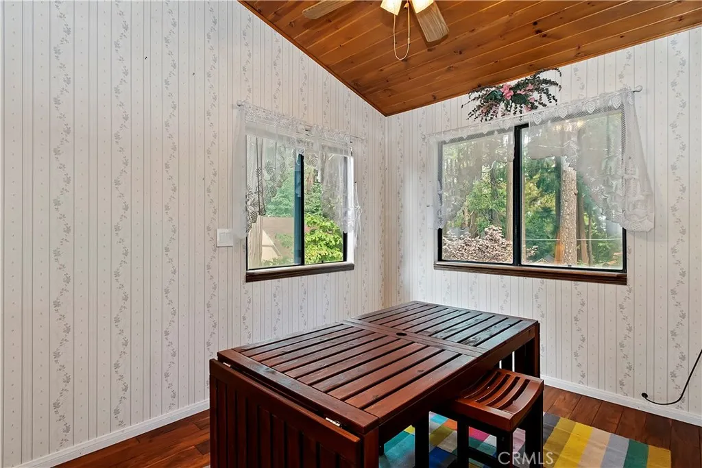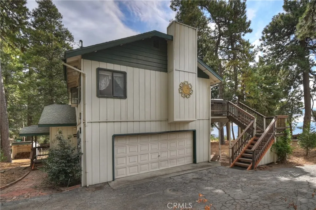 This comfortable mountain home has many desirable features not often found. It is sitting on a large near level lot that has a sunny area for a garden and a shady area near the house; and has dual access off of Skyland or Inspiration. If you enter off the deck you walk into an open concept living-dining area. It has high ceilings and a brick fireplace. In front of the fireplace is a large custom sun made out of slate. It is very attractive next to the distressed wood floor. The kitchen has oak cabinets and ceramic tile counter tops with newer stainless appliances including a 5 burner gas stove. On the upper level is a large bedroom, just painted and an enclosed deck surrounded by windows. This could be a great studio, exercise room or a place to relax. It takes in the unobstructed valley view. Also on the main level is a full bath. Downstairs are two bedrooms and another full bath. The home is equipped with a central vac system and the owner has installed a new dishwasher, refrigerator, furnace and tankless water heater. The oversized two car attached garage has a 220 outlet and a wall of cabinets for the do it yourselfer or a contractor. The property is in a convenient area to get ether down to the city or Highway 18. It has tons of parking for an RV or boat. Possible area for a future ADU. This home is clean and ready to move in.