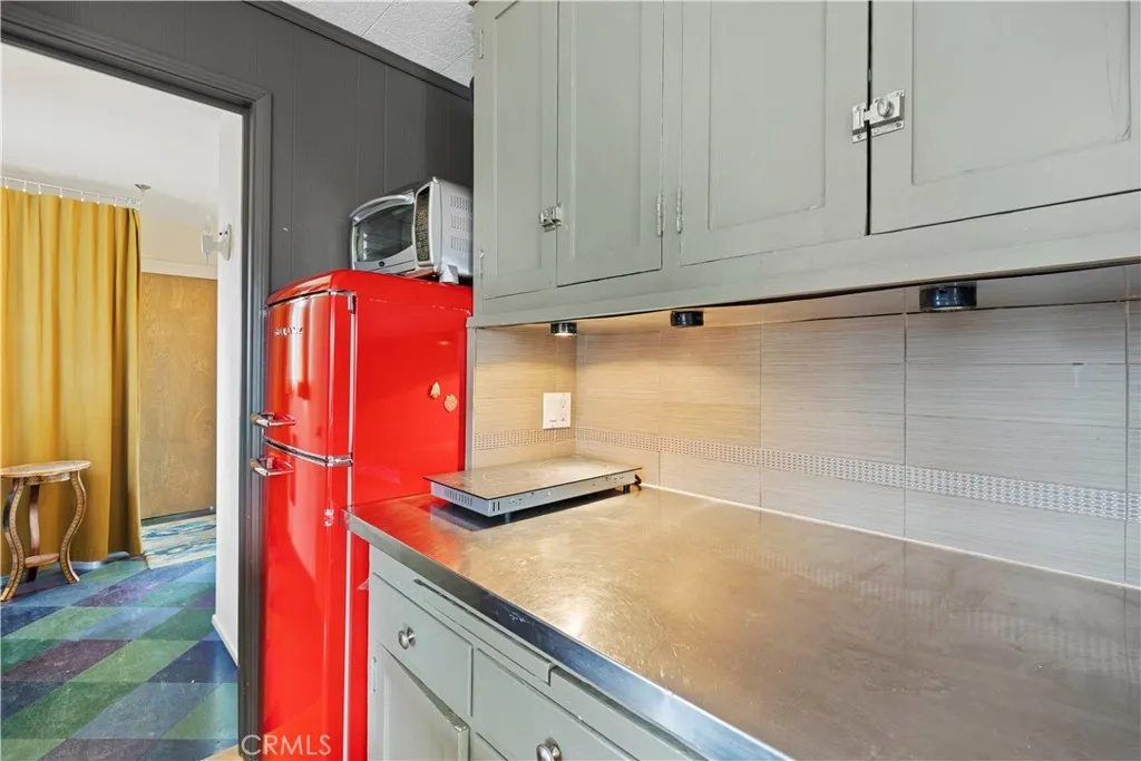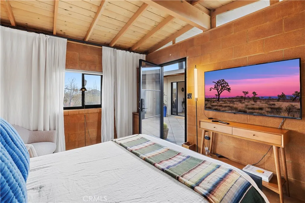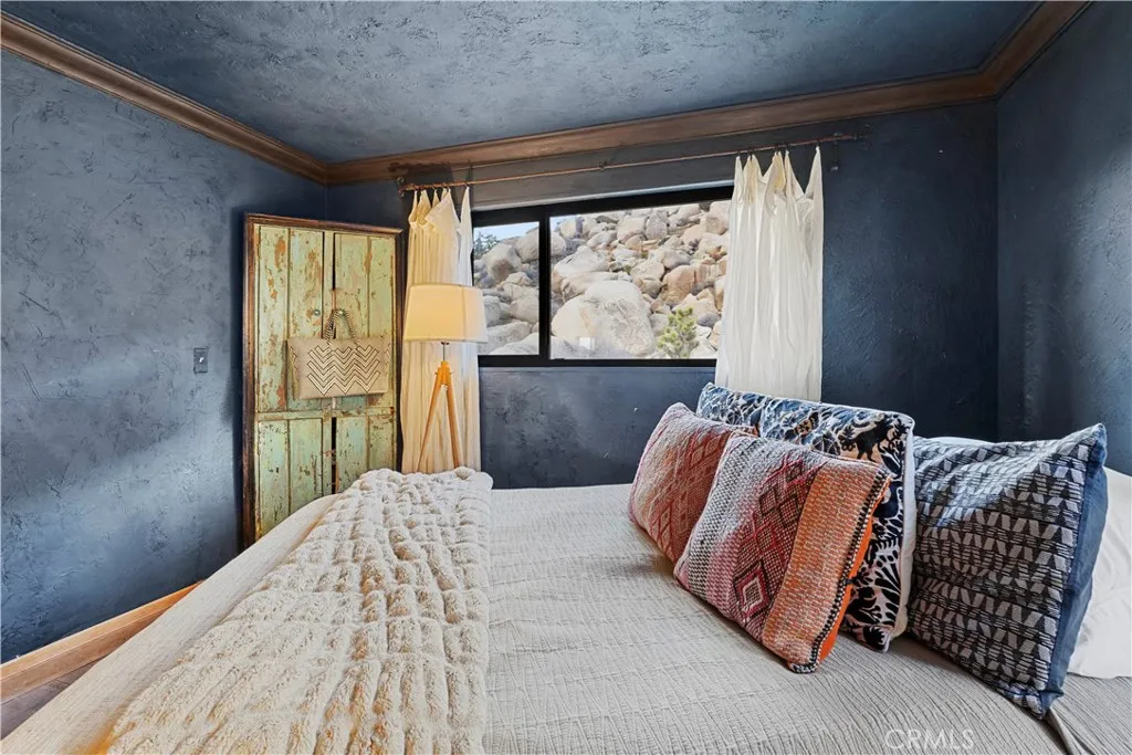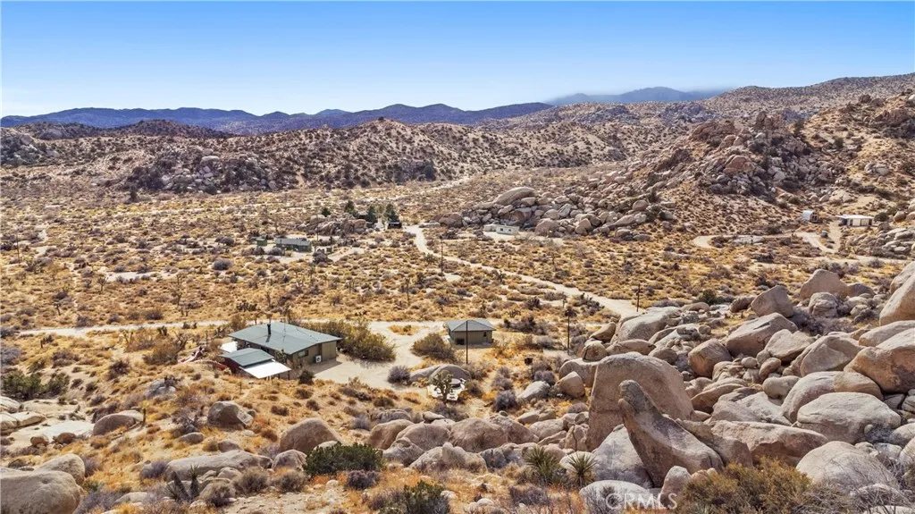 Set among massive boulders, native wildflowers, and old-growth Joshua Trees, this 5-acre property in Gamma Gulch feels like something you stumble upon once and never forget. Quiet, cinematic, and deeply peaceful, it’s the kind of place where the desert shows off—sunrises, long shadows, and sweeping views that stretch all the way to Joshua Tree National Park, and the snow-capped peaks of Mount San Jacinto. The main home is a thoughtfully updated 1-bedroom, 1-bath with just over 1,000 square feet, designed to frame the landscape from every room. Enter through custom iron doors by Pinky’s into a welcoming space that blends craftsmanship with comfort. The kitchen is a dream for anyone who loves to cook, featuring a Viking range and walk-in pantry. A wood-burning stove anchors the living room, creating a cozy place to unwind on cool desert evenings. The bathroom has been recently refreshed with modern fixtures, and the home has been newly painted throughout. Outside, the property continues to impress. A private garden with mature landscaping feels like a hidden oasis, while the patio is perfect for entertaining under the stars. Just off the main house is a studio currently used as a second bedroom, along with a finished two-car garage that offers excellent storage or creative space. At the opposite end of the land—completely private and visually separated—is a second, remodeled 700 square feet home. With an open-concept layout, full bathroom, and kitchenette, Ideal for guests, or a dedicated work-from-home retreat. The exterior has just been repainted, and the home feels fresh and serene. The main houses a private well, while the second home has its own 2,400-gallon water tank with a new digital pump. Both homes have been successful short-term rentals in the past (buyer to verify current permitting and usage), offering flexibility for personal use, income, or a combination of both. Furnishings may be negotiated with some exceptions. Despite its sense of seclusion, the property is easily accessible—just 7–8 minutes down a well-maintained dirt road, about 20 minutes to Yucca Valley, and only 15 minutes to the Pappy & Harriet’s. Adjacent 4.6-acre parcel is also available for separate purchase, offering even more room to expand or preserve the surrounding landscape. Private, expansive, and surrounded by unforgettable scenery, this Gamma Gulch retreat is a rare opportunity to own a true piece of the high desert—one that feels worlds away, yet perfectly connected.
