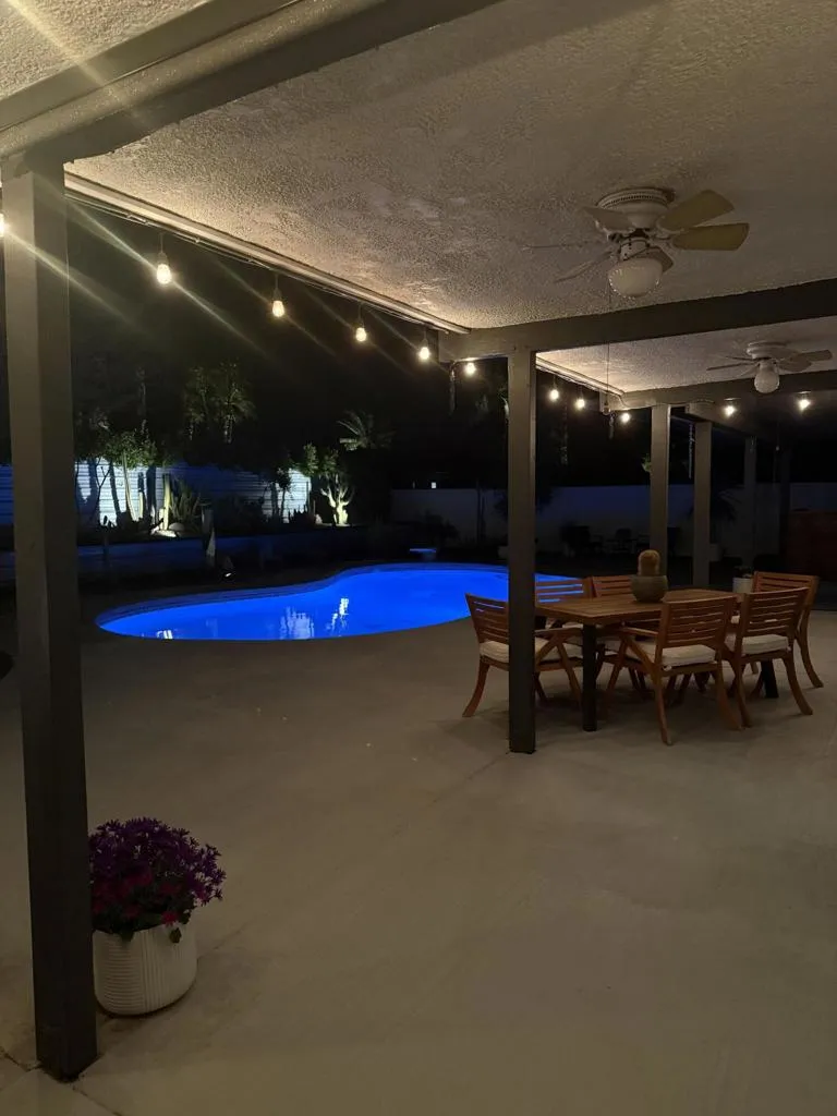 Welcome to your Palm Springs dream home! This stunningly remodeled 3 bedroom, 2 bath residence offers 1,452 sq. ft. of beautifully designed living space, all situated on an expansive lot of over 15,000 sq. ft. Located just minutes from the heart of downtown Palm Springs, you'll enjoy the perfect blend of privacy and convenience with world-class dining, shopping, golf, and entertainment right at your fingertips.From the moment you step inside, you are greeted with an inviting open floor plan, soaring ceilings, and an abundance of natural light that creates a warm and airy atmosphere. The living and dining areas flow seamlessly into the chef's kitchen, making this home ideal for both relaxing and entertaining. The kitchen has been fully reimagined with all-new sleek modern cabinetry, high-end stainless steel appliances, recessed lighting, and elegant finishes. Stunning quartz countertops and a spacious layout make it the perfect place to gather with friends or prepare gourmet meals. Sliding doors from the dining area open directly to the backyard, enhancing the indoor-outdoor lifestyle Palm Springs is known for.Both bathrooms have been completely remodeled to match the elegance of the kitchen, featuring new cabinetry, quartz countertops, and designer touches throughout. Every bedroom is thoughtfully appointed with ceiling fans and plenty of natural light, while recessed (canned) lighting runs throughout the home, creating a modern and bright feel. The home also offers an air-conditioned two-car garage, a rare feature that adds comfort and convenience year-round.Step outside into your private backyard oasisa''meticulously landscaped and designed for ultimate relaxation and entertaining. A large sparkling pool and spa invite you to cool off or unwind, while the soothing water feature adds a tranquil touch. A covered patio provides shade during the warm desert days, and the built-in misting system keeps you comfortable even in the peak of summer. There is ample space for lounging in the sun, entertaining guests, or simply enjoying the serene mountain views.This home truly embodies the essence of desert luxury living, with every detail carefully curated to provide comfort, elegance, and style.Note : Existing Lease is extended to June 30, 2067.