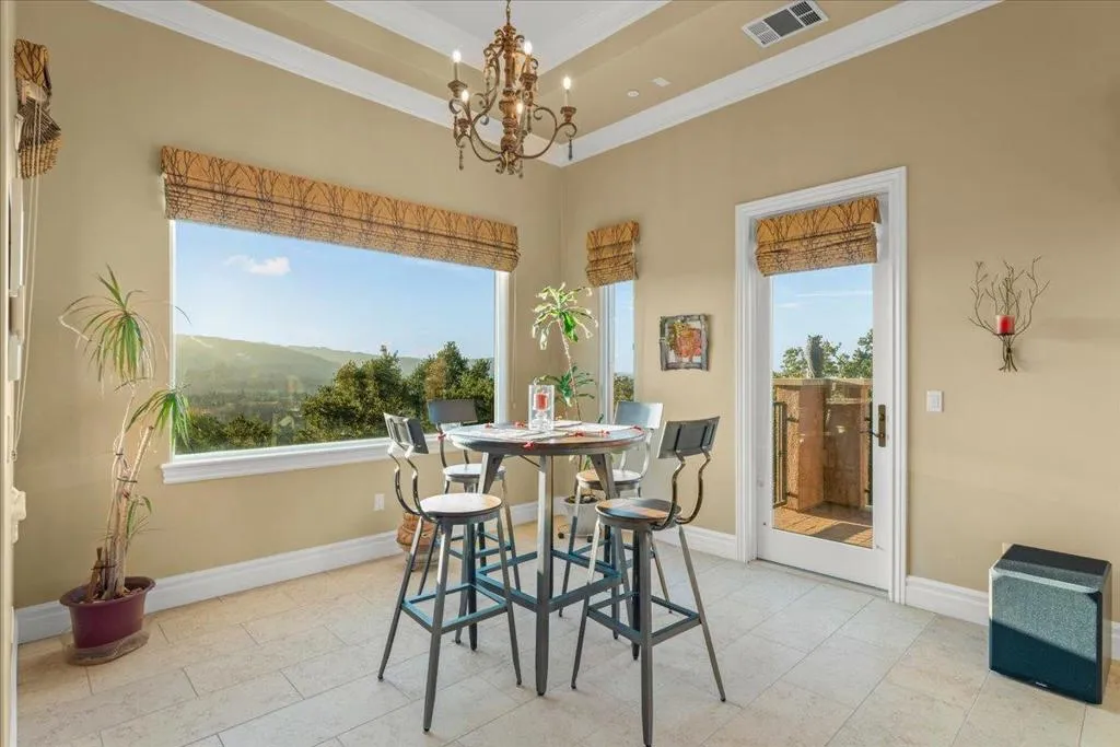 Magnificent Mediterranean Estate perched on 1.72 acre's in the Highlands Development with spectacular views of Los Gatos, Western Hill's, Mountain Winery, Cupertino Foothills, & East Bay. As you enter the wrought iron & glass doors you will find a formal entrance, formal dining room, formal living room with cast stone gas fireplace, box beam ceiling, Picture view window and french doors to exterior deck. There are 5 bedrooms with en-suite baths, 0ne 1/2 bath, including 2 large primary suites, one on each level. Spacious gourmet chef's kitchen with Thermador commercial grade appliances, 3 ovens, 6 burner gas cook-top, 2 dishwashers, wine fridge, warming drawer, and a huge center island. Attached family room with built-in cabinetry, box beam ceiling, built-in speakers, gas fireplace, and stack stone accent wall. Indoor laundry room with wash basin. Separate office with privacy glass doors. All bath surfaces are stone, granite, onyx, and travertine. Walk-in closets all with custom built-ins. Lower level Theater with screen and projector. Temperature controlled wine cellar with brick & wood beamed ceiling. Lower level game/media room with built-in speakers, 2nd butlers kitchen with rare Egyptian stone. Media rack, whole house Savant system, wood & stone floors. The list is endless!