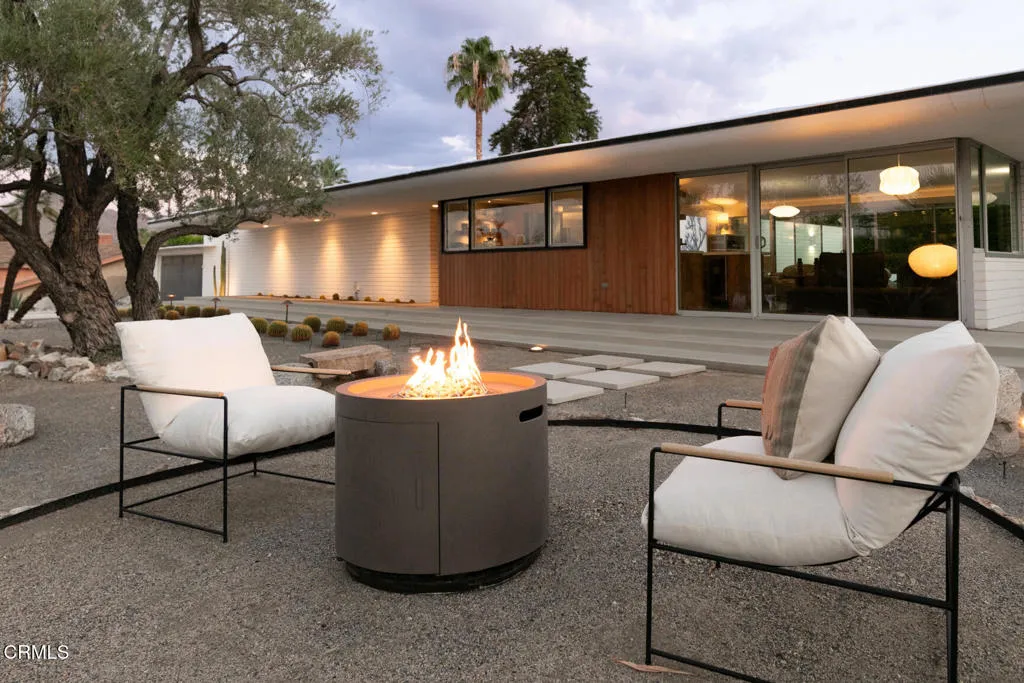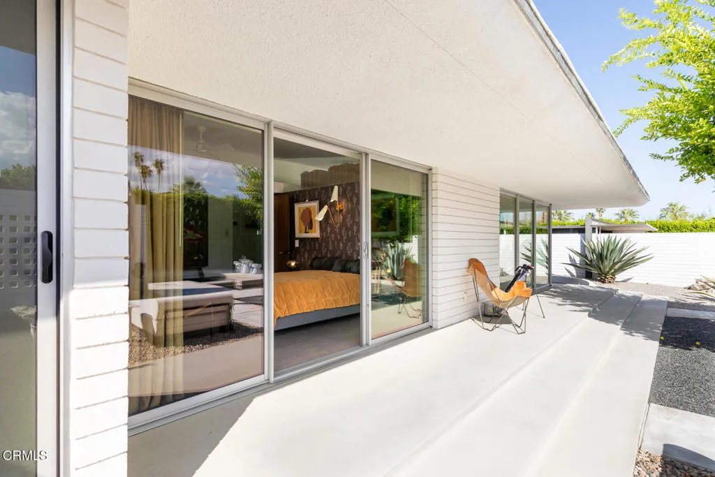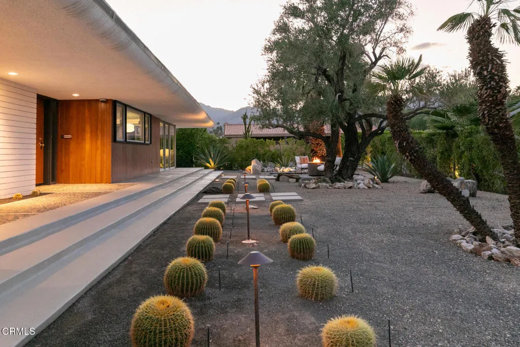 A true collector's item in the world of desert modernism, 73271 Buckboard Trail--known as the Paulette Herbert Johnson House--is a 1958 mid-century masterpiece by celebrated architect Walter S. White. Rarely does a home of this significance come to market--an exquisitely maintained and restored example of Palm Desert's architectural history, blending timeless design with resort-style living.Step through a pebble-stone entry into an open, light-filled floor plan where floor-to-ceiling glass walls, terrazzo floors, original wood paneling, and signature masonry walls create a seamless indoor/outdoor flow surrounding the living and dining areas. The custom wood panel kitchen cabinetry pays homage to its mid-century roots, while two beautifully appointed bedrooms feature cork-lined closets and bathrooms with authentic period tile and lighting. Natural light pours through every corner, framing breathtaking views of the surrounding gardens, mountains and desert skyline.The grounds are a modernist playground: a Parker-style pebble bottom pool and spa, outdoor kitchen with barbecue and pizza oven, bocce court, putting green, lounge gazebo, firepits galore, and room for an ADU--all set against panoramic desert vistas. A spacious two-car garage plus additional parking for up to six vehicles completes the estate.Located in the historic Silver Spur Ranch enclave, this home is just minutes from El Paseo's dining and shopping, the Living Desert Zoo, and Palm Desert's country clubs. More than a residence, it is an architectural icon--the Paulette Herbert Johnson House by Walter S. White--restored to its full glory and offered as a rare opportunity to own a celebrated piece of California modernism.