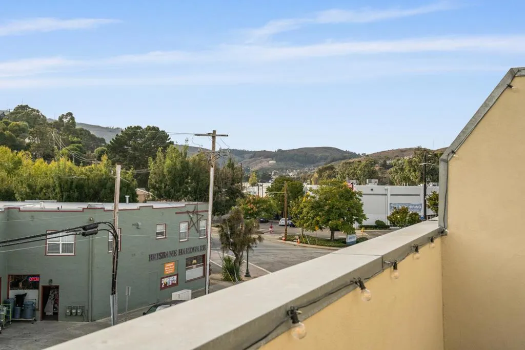Welcome to 1 San Bruno Ave #N, a top-floor 1BR/1.5BA condo in the heart of Brisbane. This rare two-story unit features soaring ceilings, southwest-facing windows, and a private balcony that fills the home with natural light. The open main level includes a granite kitchen with ample cabinetry, dining area, and living room. Upstairs, the spacious bedroom offers a walk-in closet with custom organizers, ensuite bath with modern vanity, and direct access to a large private terrace with stunning mountain viewsperfect for enjoying peaceful mornings or colorful sunsets. Fresh paint, cleaned carpets, in-unit laundry, and central AC highlight the home, with recent upgrades including a new HVAC system, water heater, refrigerator, and light fixtures. This is one of only four southwest-facing two-story condos in the community, and the only one with central AC. Amenities include gated garage parking with storage, bike room, and a rooftop deck. Located next to Brisbane Community Park and walking distance to downtown shops, restaurants, library, pool, tennis courts, dog park, and nearby Quarry Road and Crocker Park trails, all with easy access to SF, SFO, Hwy 101, and 280.