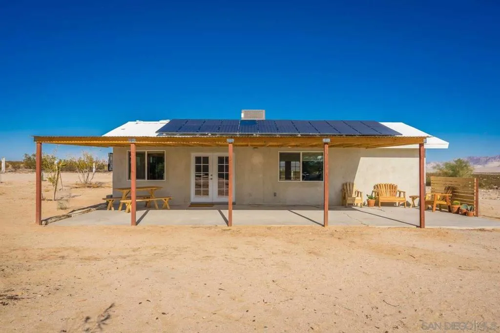 Two beautiful homes on 5 private acres. This property is a dream. Both homes have been remodeled in the past 7 years and are designed with a mix of big open spaces and private hideaways. The vast surrounding desert and views of the nearby mountains make an ideal setting. The main house has 3 beds, 1 bath and a full kitchen. Walls of windows let in natural light and views. The living room, dining room and kitchen have built in speakers. There's central AC, heat, a swamp cooler, and a wood burning stove for cool winter nights. The primary bedroom has an oversized tub on a cedar pedestal. The second home has a large primary bedroom and two small sleeping rooms. The large living rooms french doors connect to front and back patios. The bathroom has a marble shower with a waterfall shower head. The kitchenette is good for tea, coffee, and small meals. Outside there are multiple patios, a hot tub for star gazing, a giant stone labyrinth and a private tent/ meditation platform. All 5 acres are fenced. The property is irrigated and has an assortment of young plants and well established trees like the giant Palo Verde that you'll see in the pictures. Whether you are looking for multi generational living, a vacation rental that you can enjoy when you're out of the city, or some combination of the two, this property is dynamic, beautiful and full of magic.