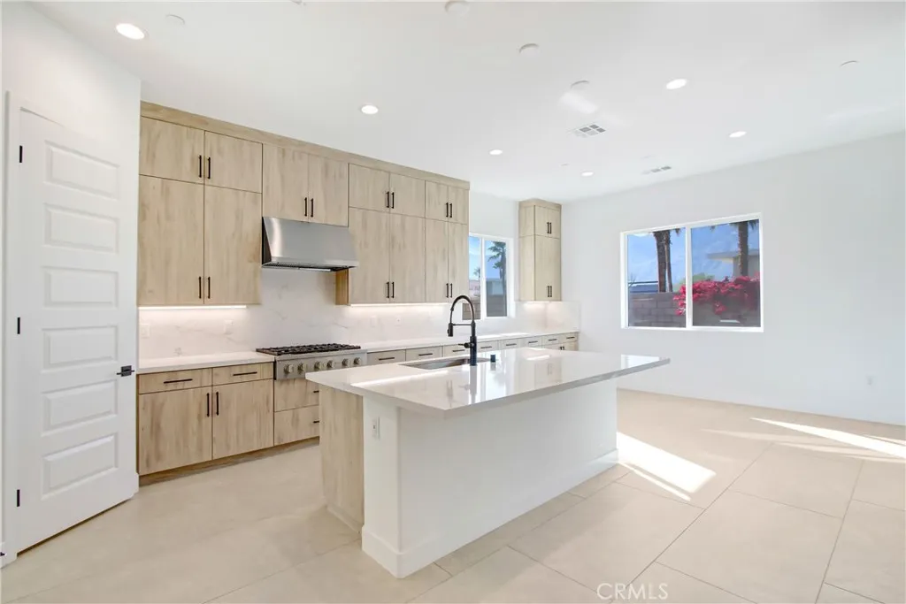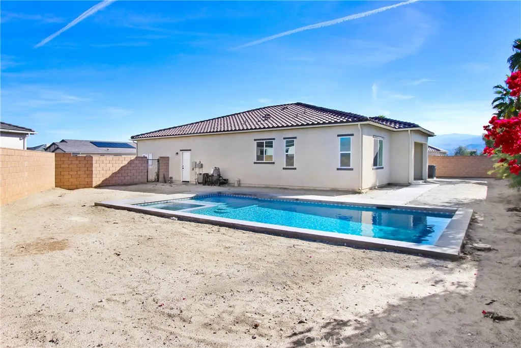 Located in the Prestigious Escena Golf Community in the Palm Springs area. All of our homes include a custom Pool and Spa and many custom designer features. This home, the beautiful Delaney floor plan boasts an open floorplan with 3 bedrooms, a formal dining room, great room and luxurious chefs kitchen with stylish bronze faucets. Quartz kitchen counters including a large kitchen island perfect for entertaining. Amazing GE Monogram appliances including the Built in Refrigerators. Two and a half baths including the primary bedroom with gorgeous ensuite bath, shower and soaking tub. Indoor laundry room with cabinets and sink. Great room has double sliding doors that leads to your expansive covered patio where you can enjoy the fabulous views of the Palm Springs mountains. Gated community, with walking paths, and pet friendly